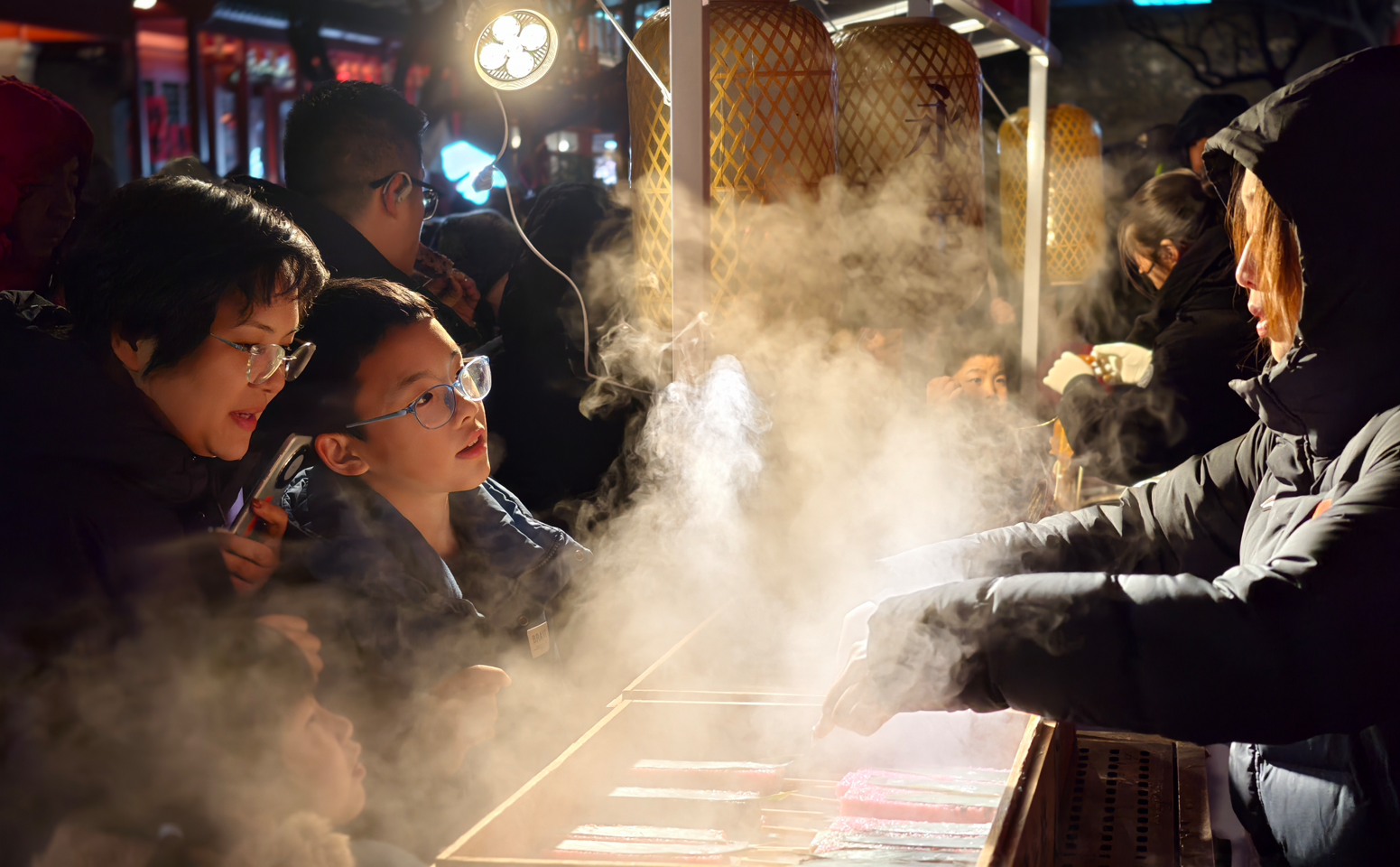 除了主舞台的精彩演绎,宛平城全域联动推出的丰富活动,让跨年体验更具层次感与趣味性。华夏积木、礼遇北京等特色商户热闹非凡,从卢沟桥礼物的“卢沟桥狮子”系列文创,到馄饨侯热气腾腾的鲜虾馄饨、阿姐牛杂煲的暖心汤锅 ,再到义利的熔岩蛋糕等风味美食,琳琅满目的商品吸引了大量游客。