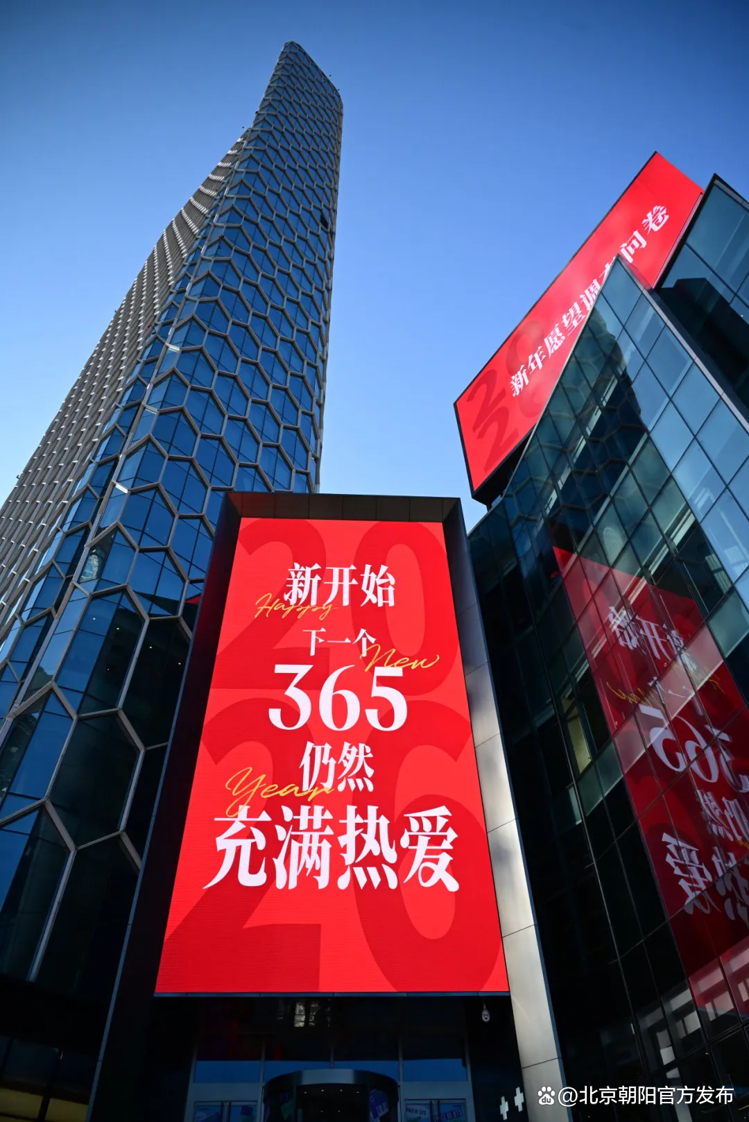 朝阳街头的大屏齐齐亮起“心里话”