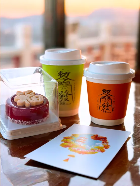 捧一杯限定特饮立于观景台