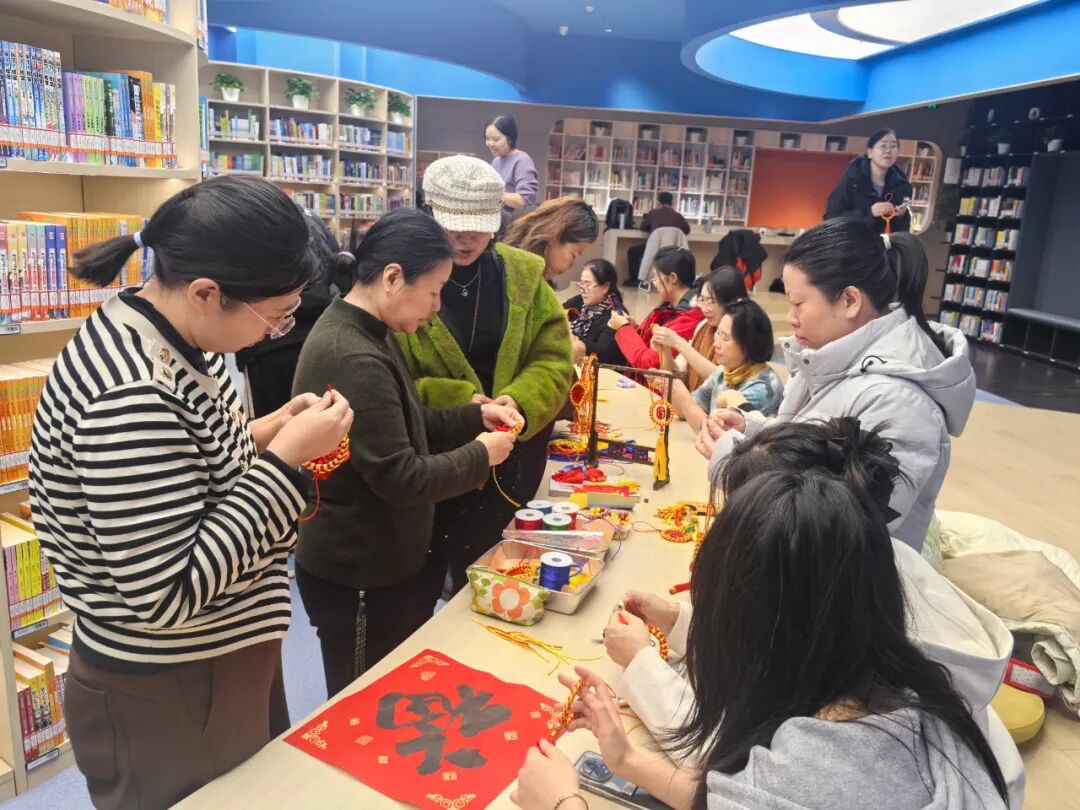 参与活动的园区企业员工李响是个手工爱好者,她一边调整绳结的松紧一边说:“平时工作都在跟代码打交道,没想到图书馆开馆还能体验非遗手工,感觉特别治愈。”