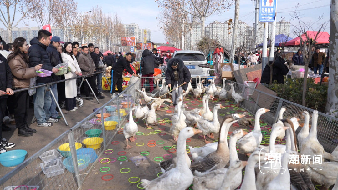 曹洼大集套大鹅游戏。记者 周旭辉 摄