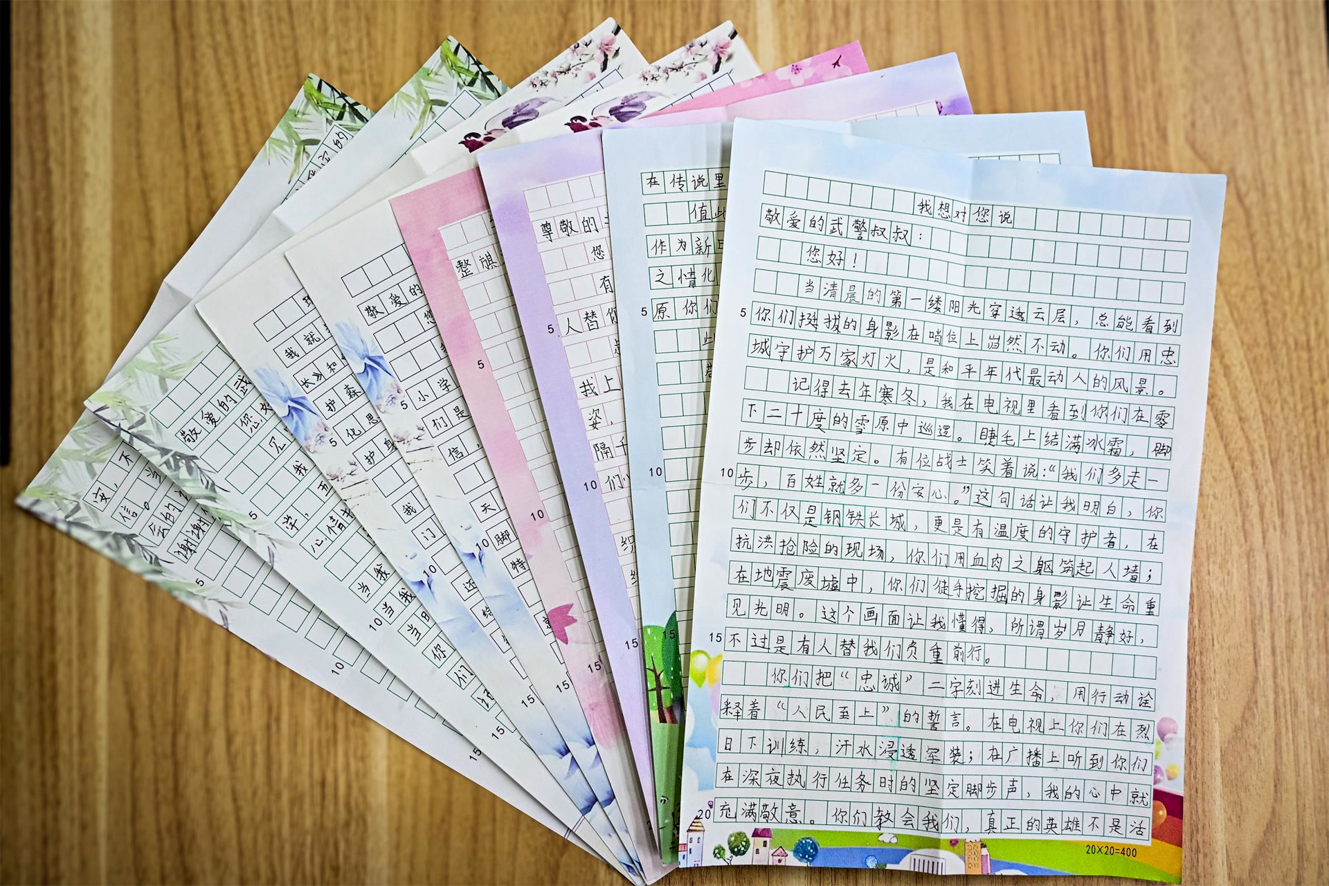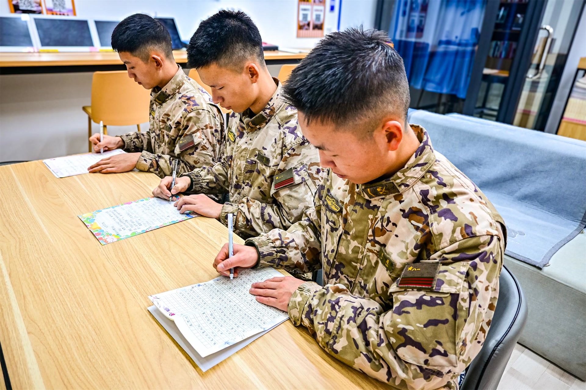 “你们守护万家灯火,就是我们心中最亮的星 。”在武警北京总队某中队学习室,战士刘超捧着一封来自千里之外的信,轻声念出这句话,眼中泛起温暖的光。他身旁,中队官兵面前都摊开同样的信纸,真挚的话语,让这些硬汉坚毅的面庞不自觉柔和了下来。