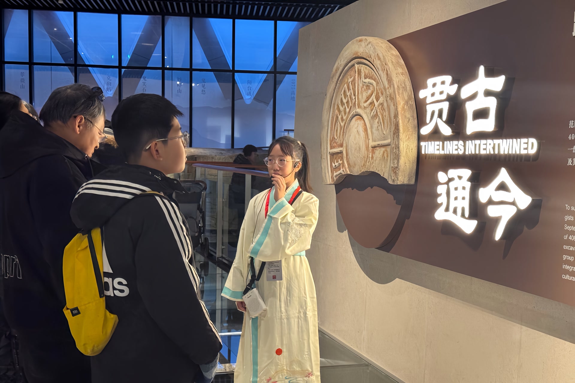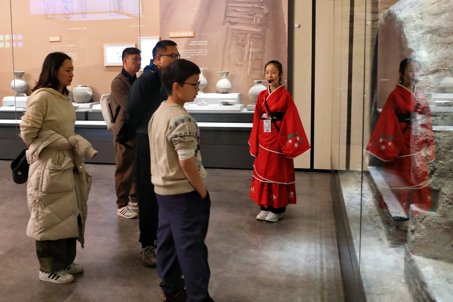 更精彩的是“汉风穿梭站”角色扮演讲解!“文脉守护团”和“路县少年说”志愿者身着汉服化身汉代人物,用生动演绎讲述路县故城历史,带你“穿越”回千年之前。