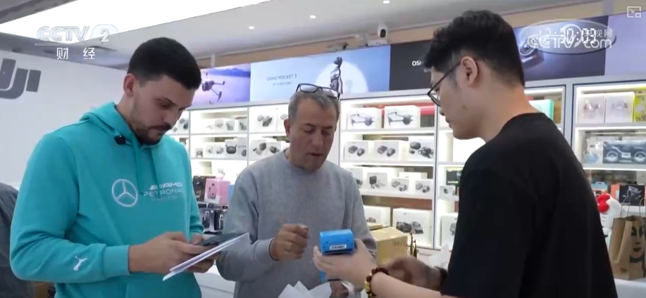 外国游客表示,给儿子买了玩具车,买了一些科技产品给家人。