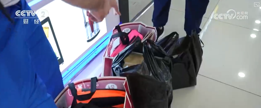 广东深圳华强北商户介绍,他们买很多潮品之后就会到这来买行李箱,基本上一天卖10到20个。他们有的时候是先买空箱子买东西,还有的买了很多他们会提着购物品然后再买箱子。