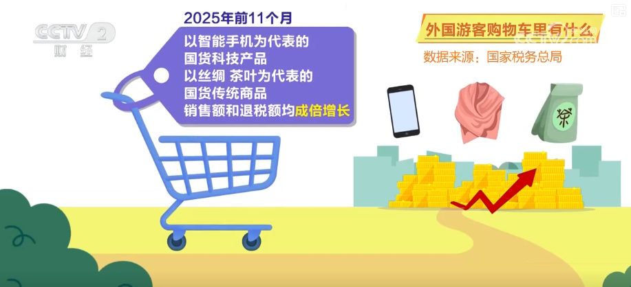 数据显示,2025年前11个月,以智能手机为代表的国货科技产品和以丝绸、茶叶为代表的国货传统商品销售额和退税额均成倍增长。