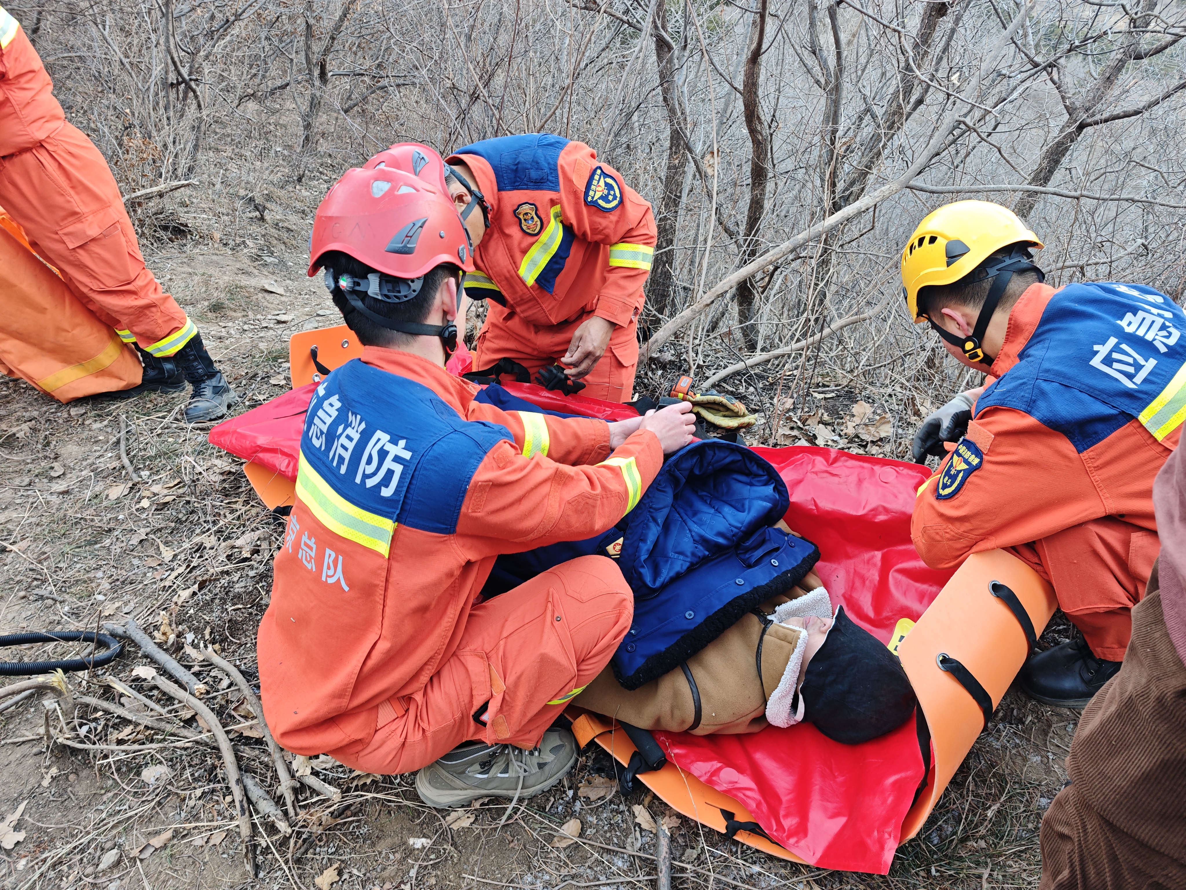 当天接警的是怀柔区桥梓消防站,队员们携带专业救援装备,火速驱车赶赴现场处置,14时40分抵达山脚。
