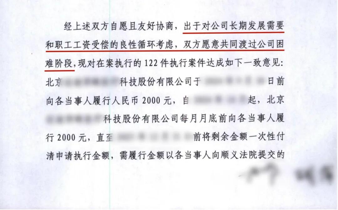 “大家放心,和解是一种途径,如果能给企业时间和空间继续经营,创造经济价值,你们的工资能更快执行到位。”王海龙为员工代表解释起了方案执行原则,“我们会维持一定执行力度,你们担心的财产流失、转移等情况一定不会发生。”