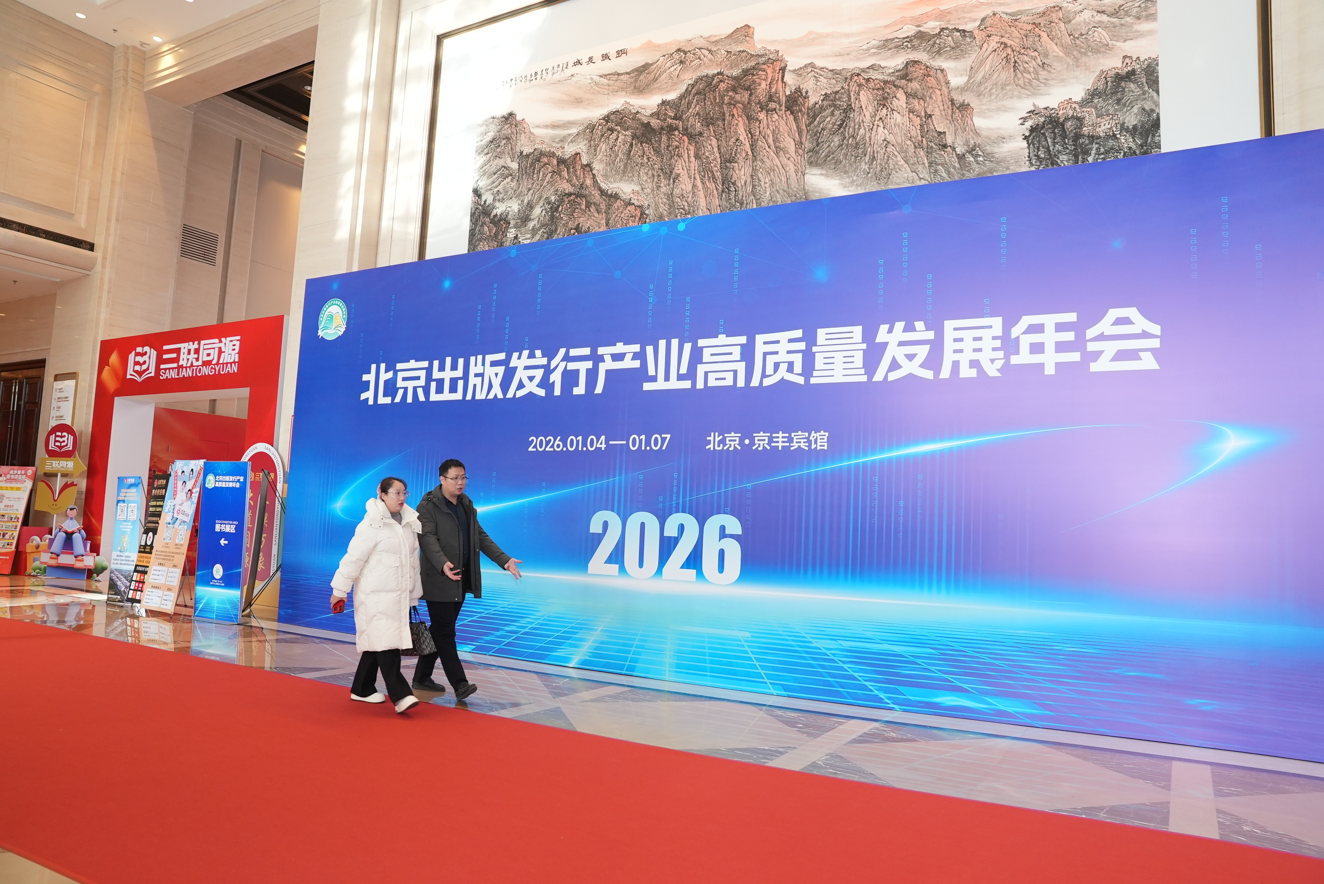 南来北往的出版人又到了一年一度相聚的时刻。1月4日,2026北京出版发行产业高质量发展年会在北京京丰宾馆启幕。这也是发展年会时隔20年重回京丰,走廊里熙熙攘攘的人群,密密麻麻的图书广告牌,述说着“出版江湖”的崭新故事。