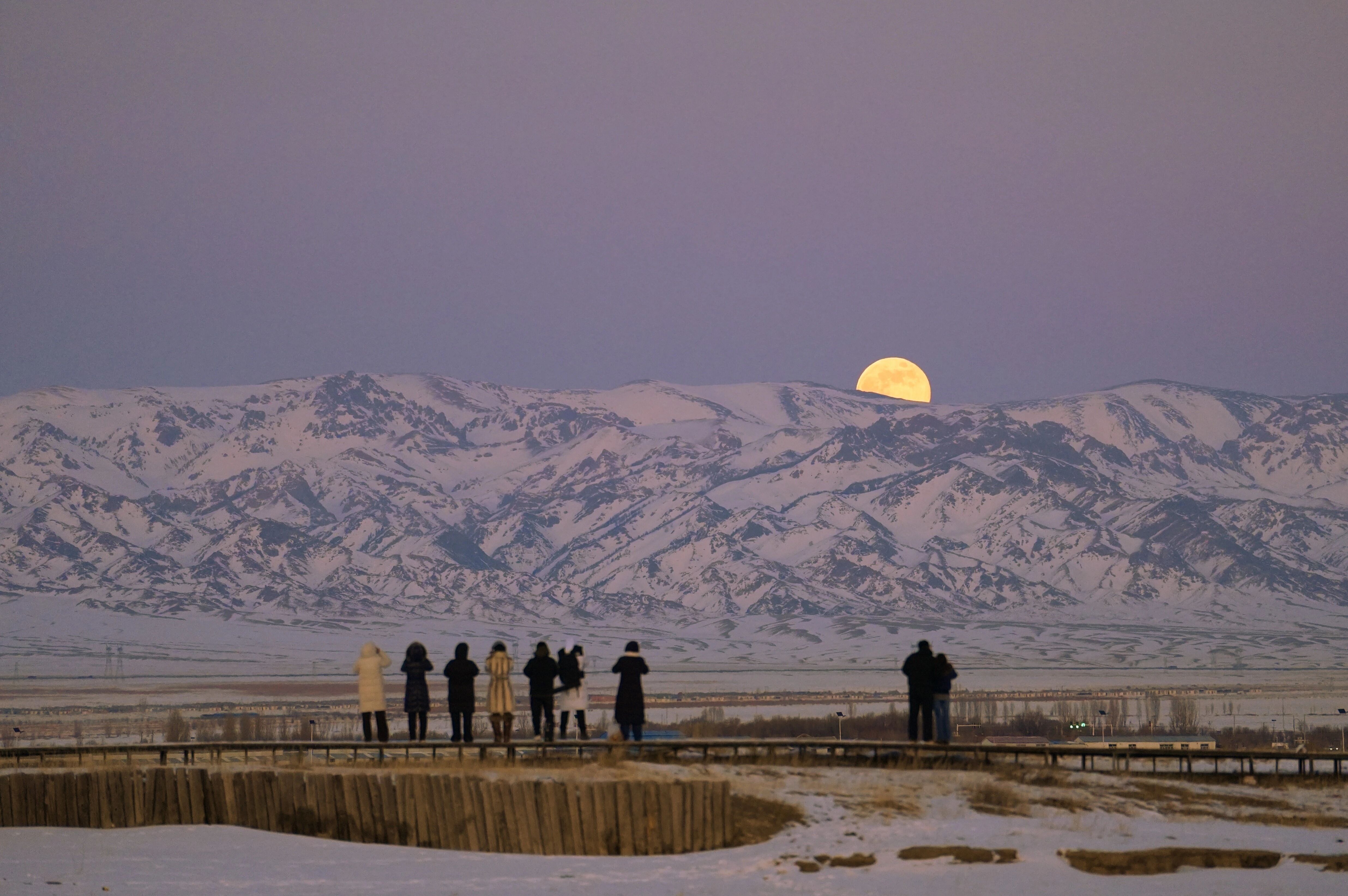 来自北京师范大学附属中学高二年级的王紫承是一名星空摄影爱好者,此次新疆之行他也有参与。王紫承告诉记者,“寒夜里,我们站在雪原边等着月亮升空。起初只有半轮月亮露出山脊,随后,它一点点挣脱山影,越来越清晰,伴着日落金黄的余晖,人群中传来低声的惊叹,接着是忍不住地欢呼,所有寒冷都被忽略了。”