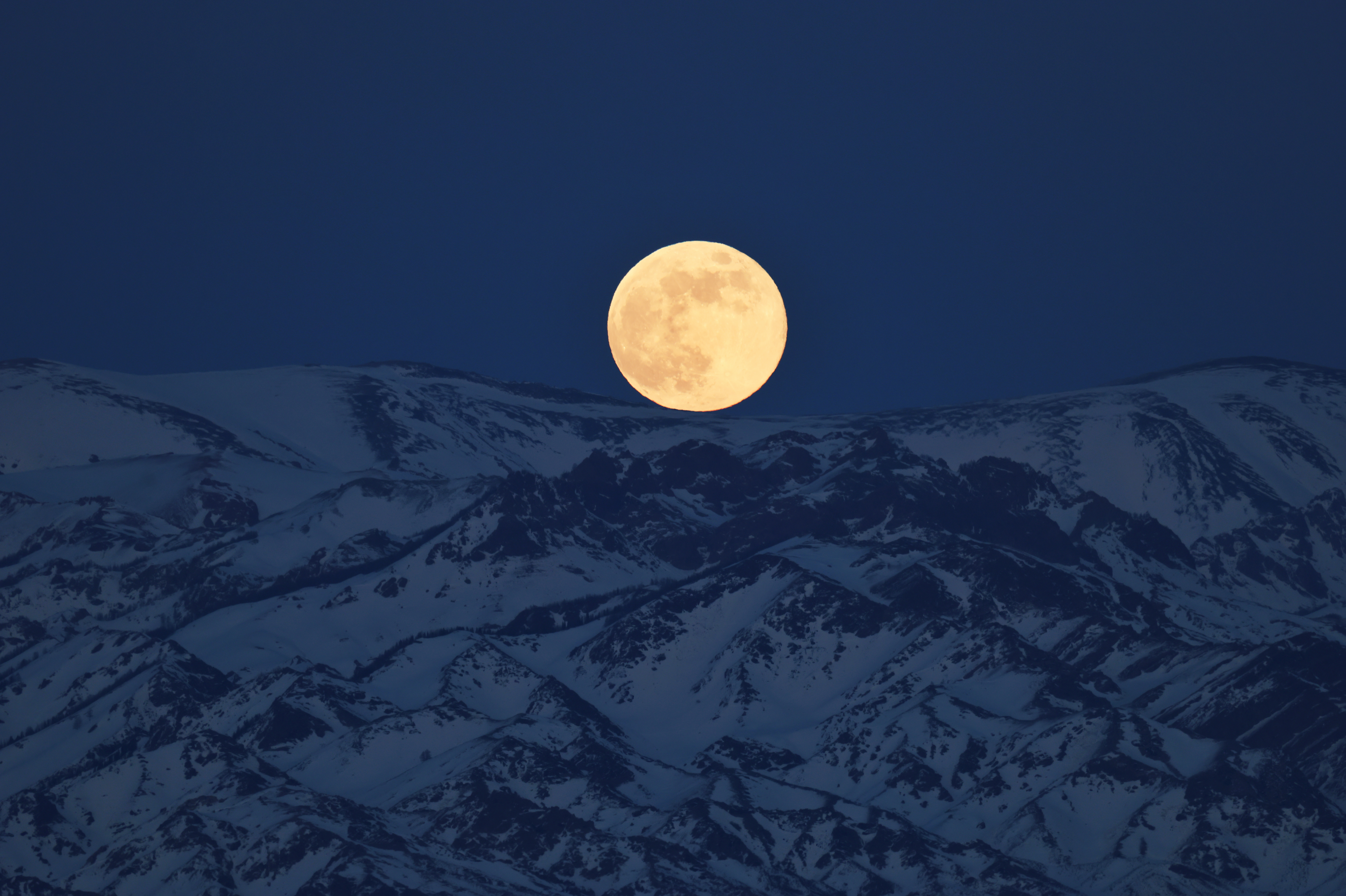 率先登场的是超级月亮,这也是2026年首个满月。“当暮色浸染雪原,一轮硕大皎洁的圆月跃出山巅,这一刻,全场的人欢呼雀跃。”王俊峰说。