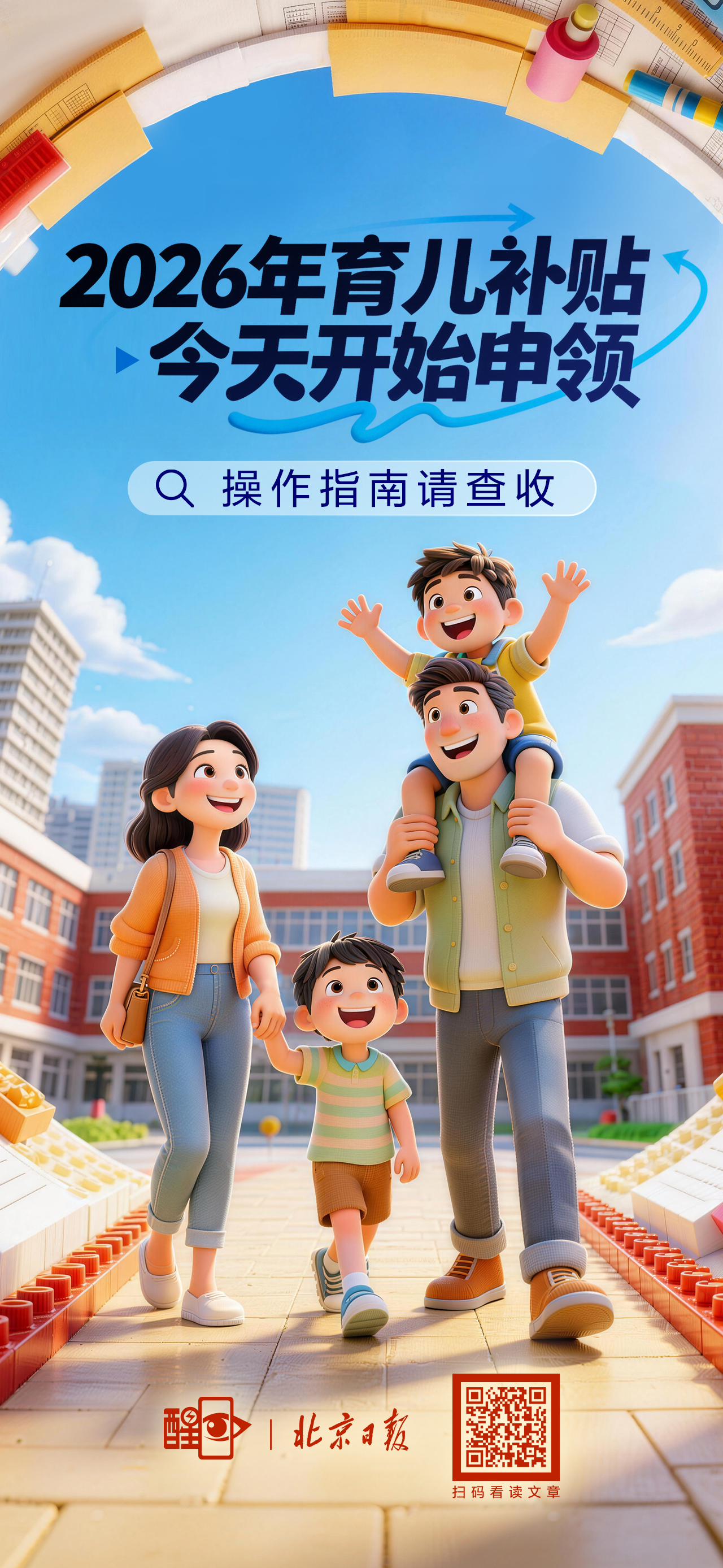 记者今天(5日)从国家卫生健康委了解到,2026年度育儿补贴今天正式开始申领,凡是符合申领条件的婴幼儿,其申领人今天就可以通过支付宝、微信平台的“育儿补贴”小程序,还有婴幼儿户籍所在省份的政务服务平台育儿补贴申领专区线上申领,也可以到户籍所在地的相关部门线下申请办理。