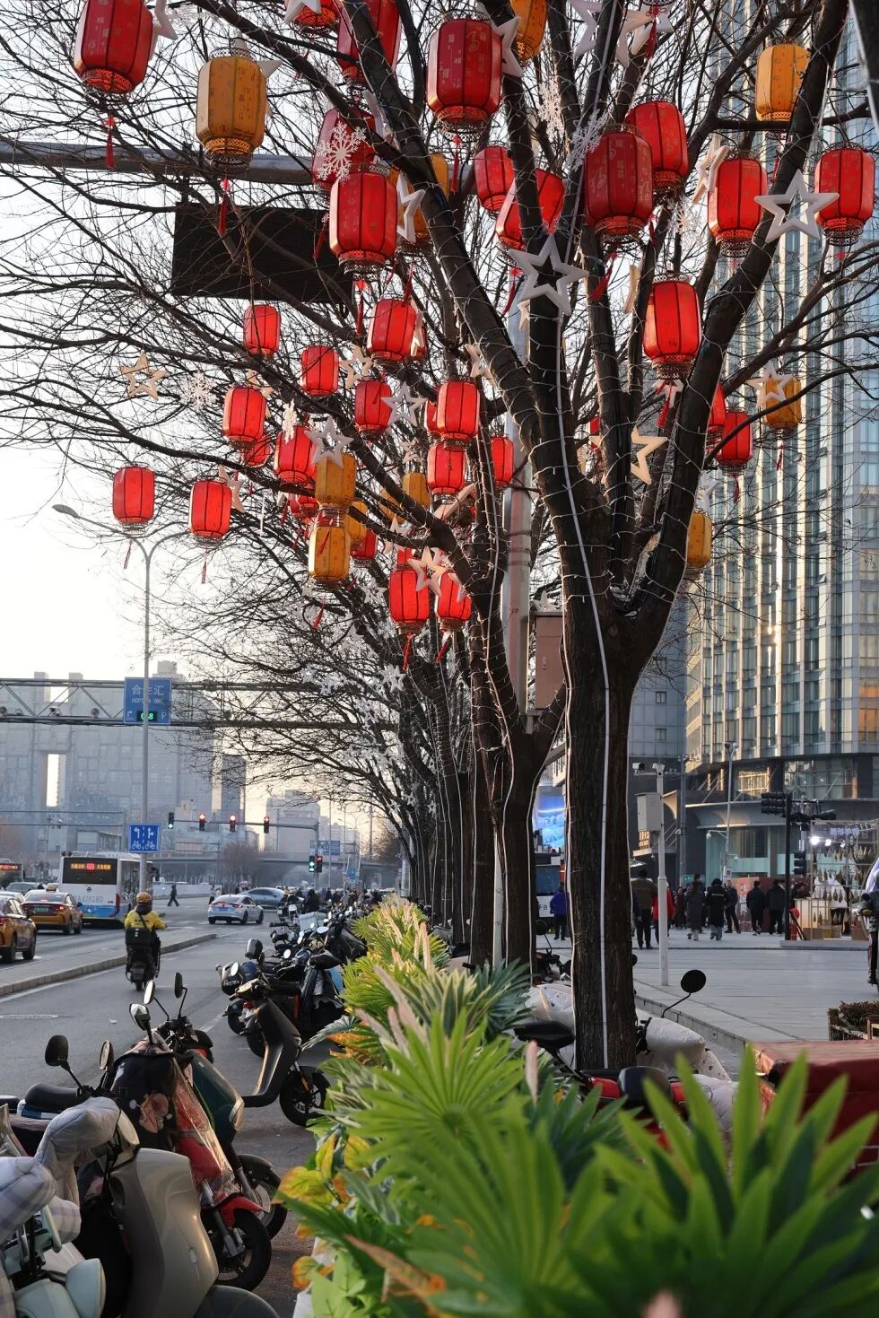 已被新年装饰织成了暖色调的画