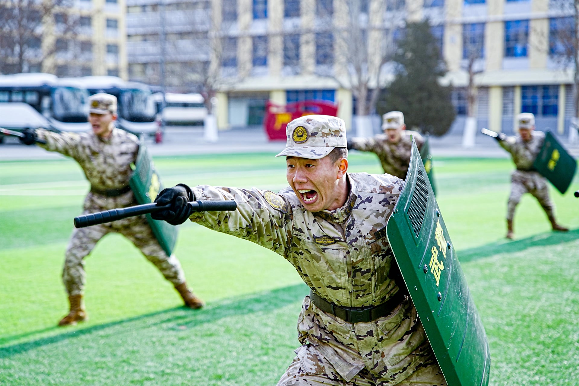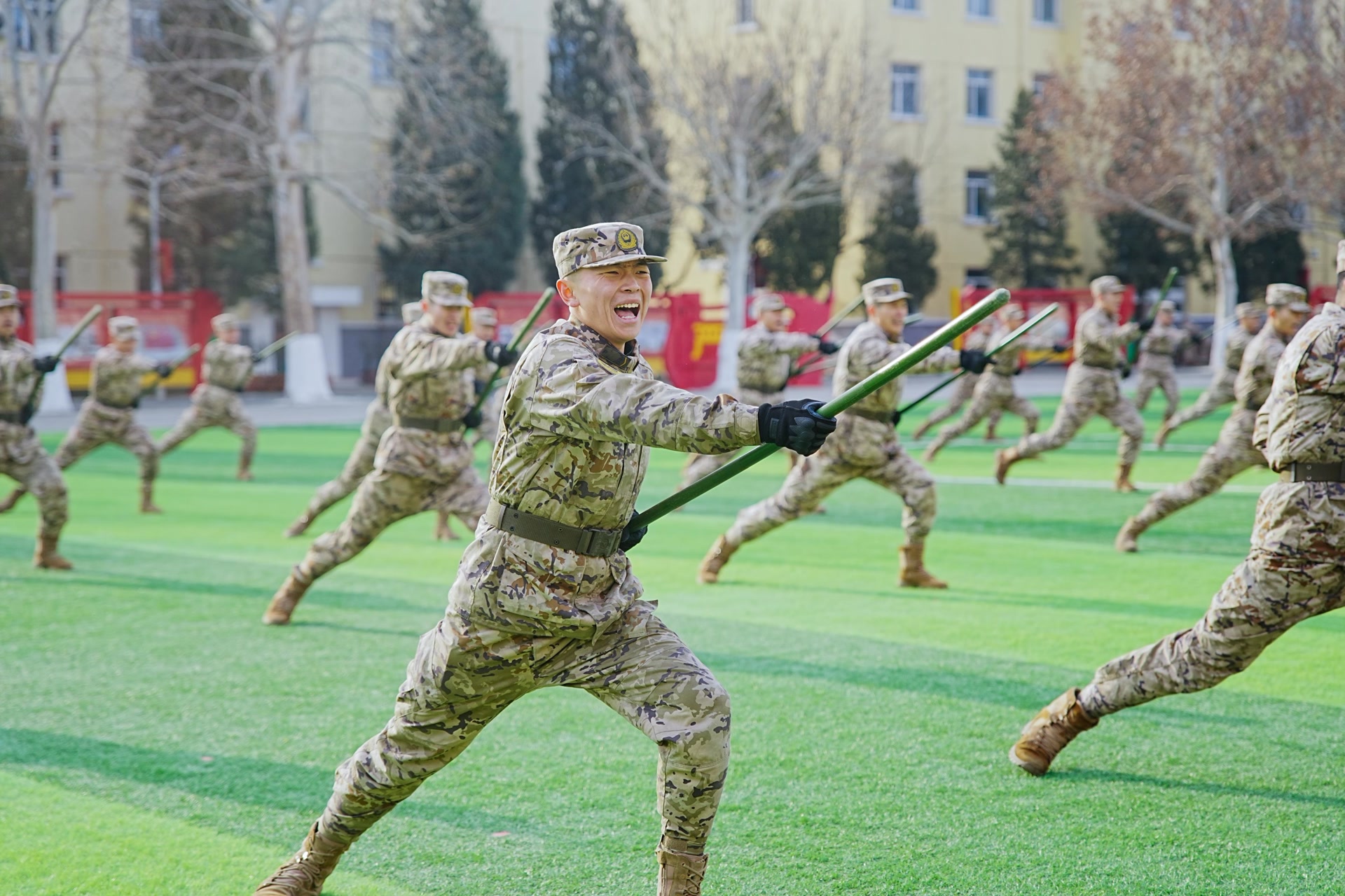开训即开战,动员即誓言。全体官兵整齐列队,气势如虹,以昂扬的精神状态参加动员,以饱满的热情奔赴校场,全面开展实战化军事训练。练兵场上,刺杀、擒敌、应急棍术、匕首格斗术等多课目迅速展开,官兵们士气高涨、呼号震天,不惧严寒、严格训练。
