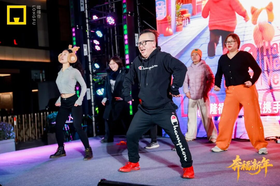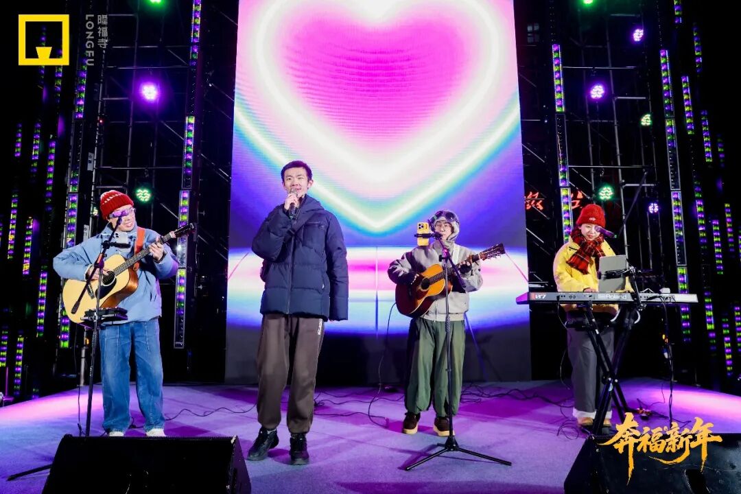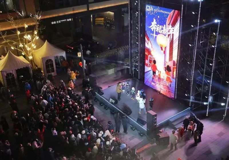 “新年氛围这么浓!‘福’字满街、五福巡树,晚上灯亮起来太有感觉了!”游客李女士和闺蜜一边拍照一边感叹。现场,互动表演率先点燃氛围,多支乐队轮番献艺,经典旋律与流行节奏交织,让街区充满活力。