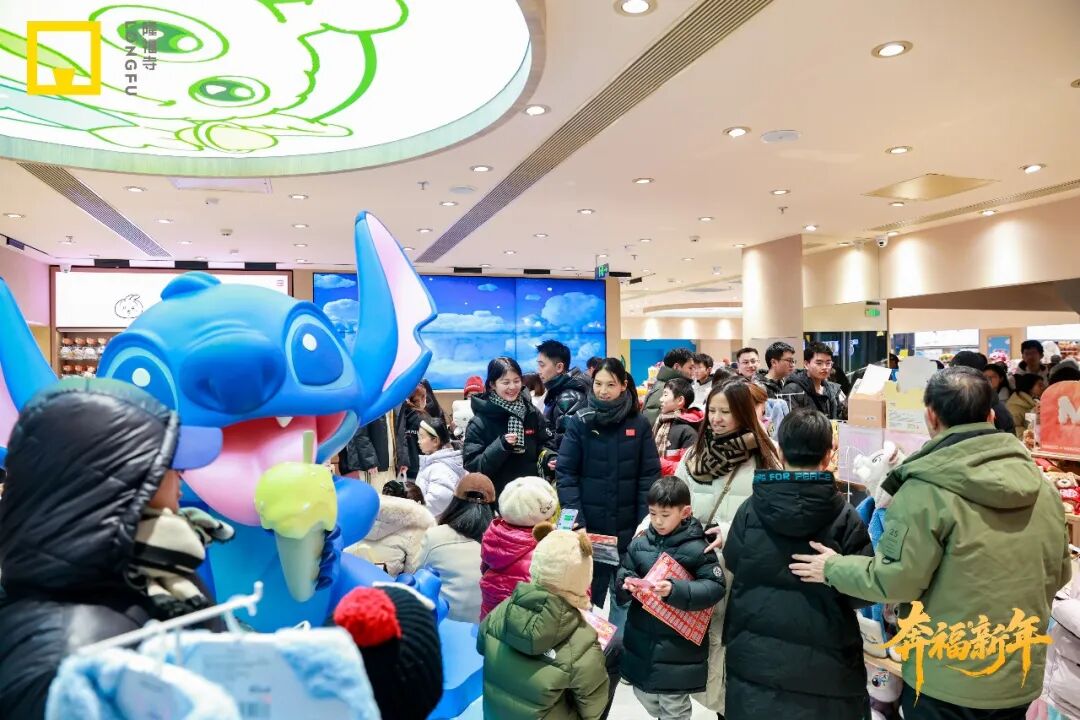 此次跨年活动特别设置了“许愿弹幕”环节,将数字科技与传统祈福巧妙结合,精准呼应当代消费者的精神文化需求。在主持人的带领下,市民游客通过手机扫码发送的新年心愿在大型屏幕上流转汇聚,形成一道温暖而震撼的“心愿光河”。此外,现场还设置了融合传统寓意与现代创意的“福运使者”互动环节,更增强了市民游客的参与互动感。