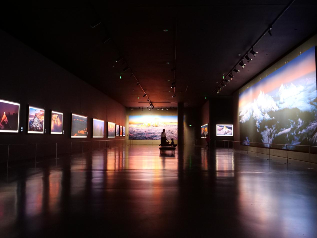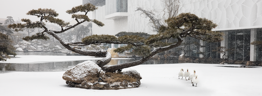 罗红摄影艺术馆的黑调展厅里,是来自世界各地的生命瞬间,西藏的日照金山、南极的帝企鹅……让人短暂离开城市与季节。走出展厅,水雾氤氲的园林与湖面相连,天鹅掠过湖面。