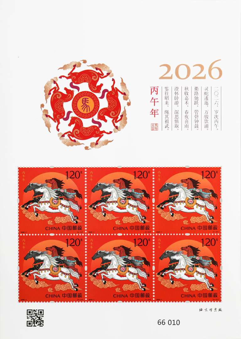 据了解,《丙午年》特种邮票由王红卫、赵恩重设计,北京邮票厂有限公司采用胶雕套印工艺印制。邮票自征稿阶段,广泛动员全民参与,吸引了艺术名师、行业翘楚和民间高手角逐较量;在评审阶段,经过大众与专家的双轨评审,优秀图稿从440幅参评作品中脱颖而出;在印制阶段,中国邮政以高精度雕刻技术制作图稿。