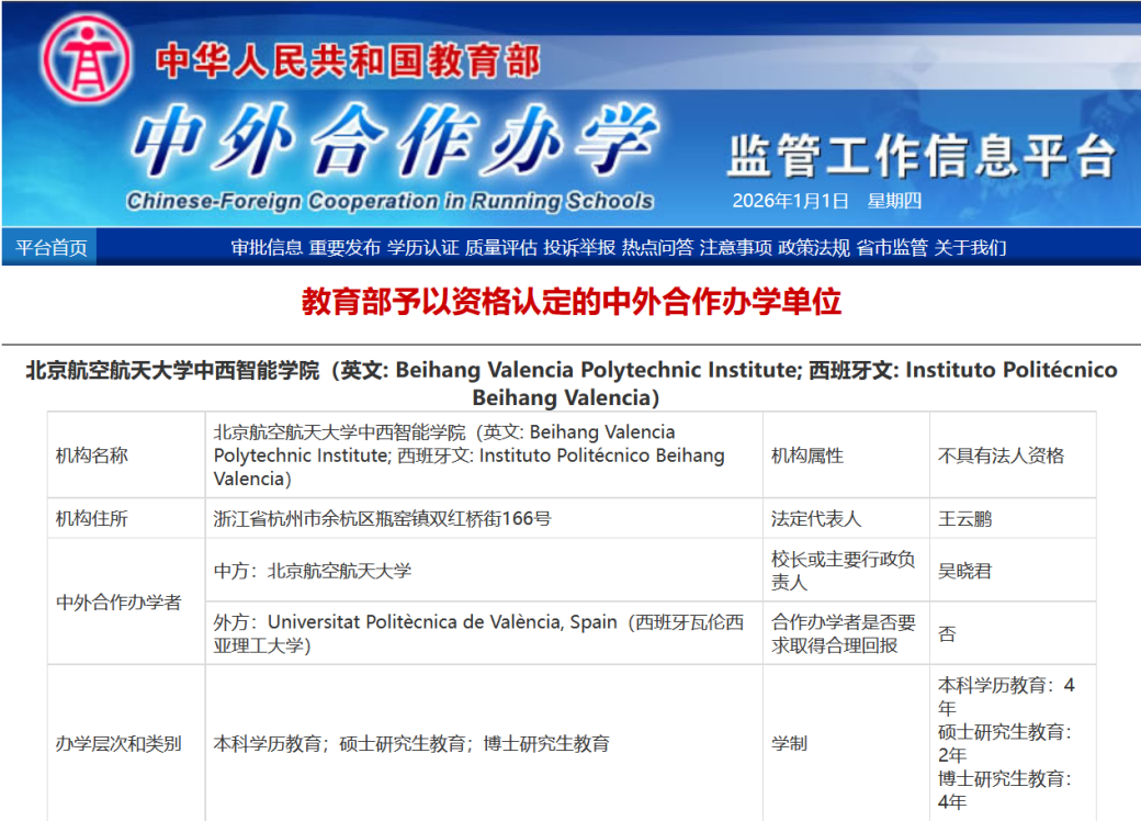 其中,智能化导向与跨学科融合是该校培养特色,学生毕业将同时获得北航学位与瓦伦西亚理工大学学位。后者在2025年软科世界大学排名中位居西班牙理工类大学第一,西班牙《世界报》大学排名工程学全西第一。