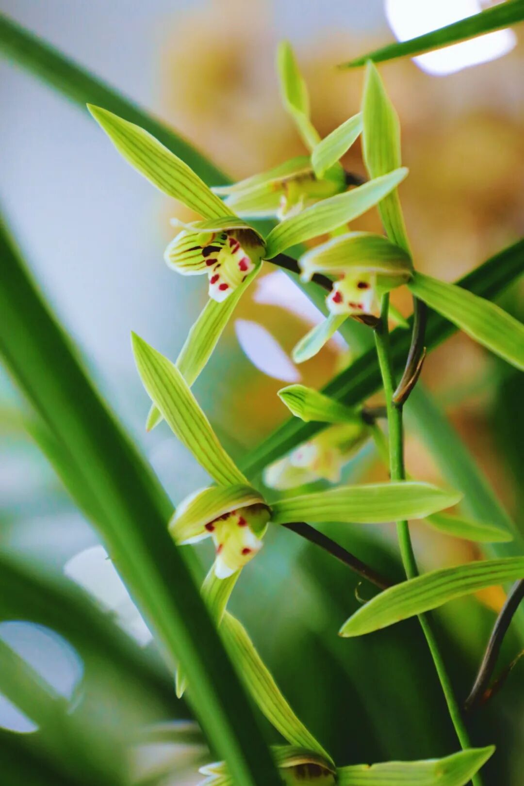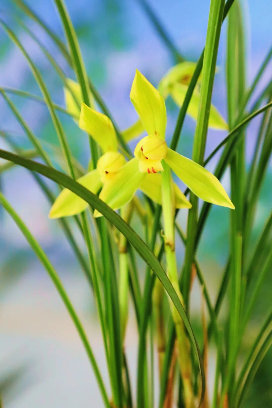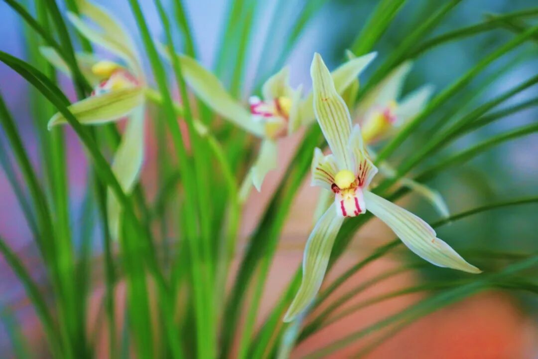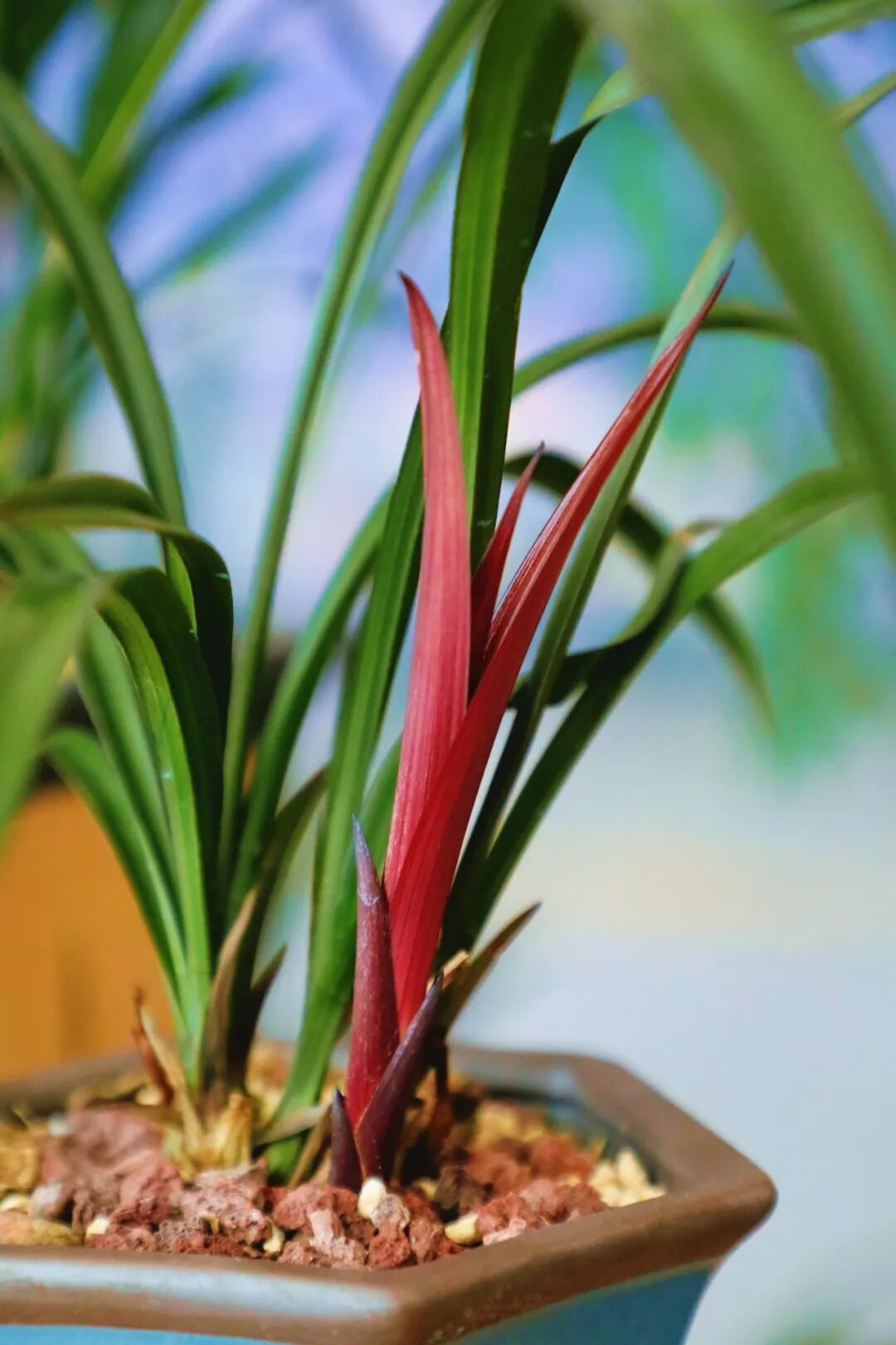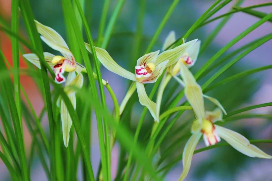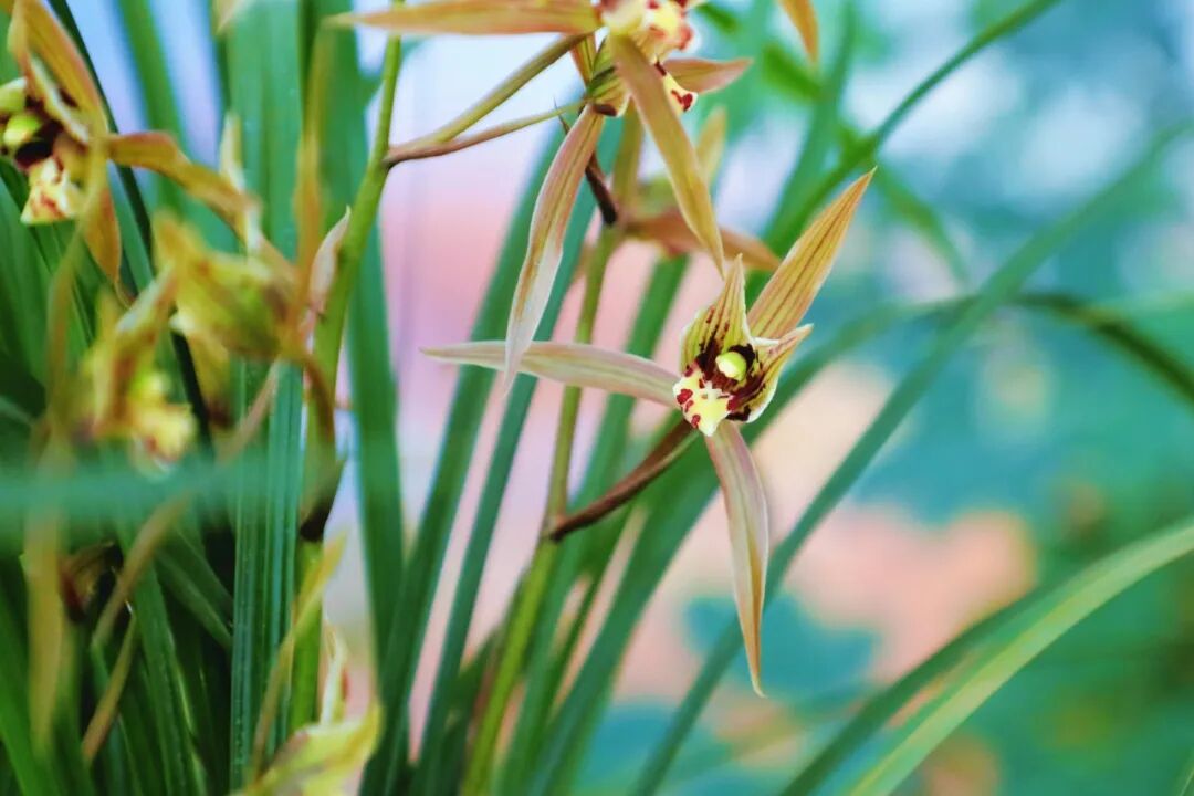 国兰作为兰花中的重要品类,以素淡雅致的气质见长,展览中展示了冬春季节开花的春兰,寒兰,莲瓣兰。这些兰花细叶飘逸,花朵幽香,正是文人墨客笔下的君子之兰。本次展览中还有一盆建兰虽然不在花期,但鲜红的新芽也十分有趣是受到追捧的兰花变异之一。