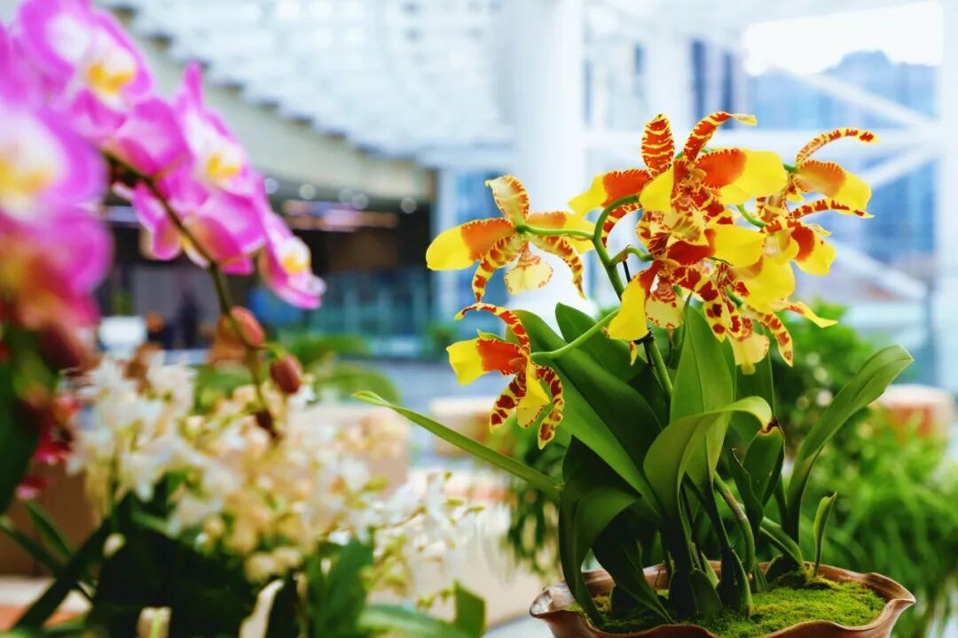 品种兰花中还展示了兜兰,蝴蝶兰,文心兰,春石斛,卡特兰等观赏兰品种。