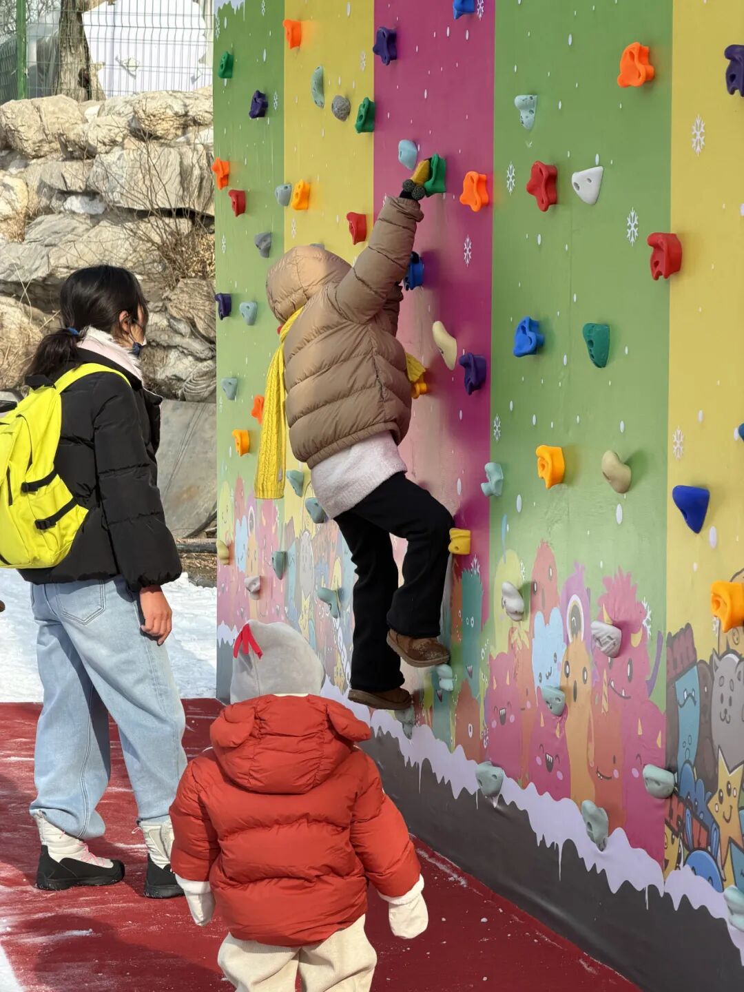 热爱挑战的游客,千万别错过冰雪大闯关挑战区。负重挑战中,背负雪橇如离弦之箭冲向终点,既是体能与耐力的双重考验,也是亲子协作、好友PK的欢乐赛场;摇摆设计的雪上吊桥看似简单却暗藏玄机,在步步惊心间尽显勇气与智慧;在雪山攀岩体验项目,大人小孩都能挑战自我、培养勇气,感受攀爬的乐趣。“当我登顶的时候,感觉自己真是太酷了!”5岁的天天扬起小脸,满是骄傲。