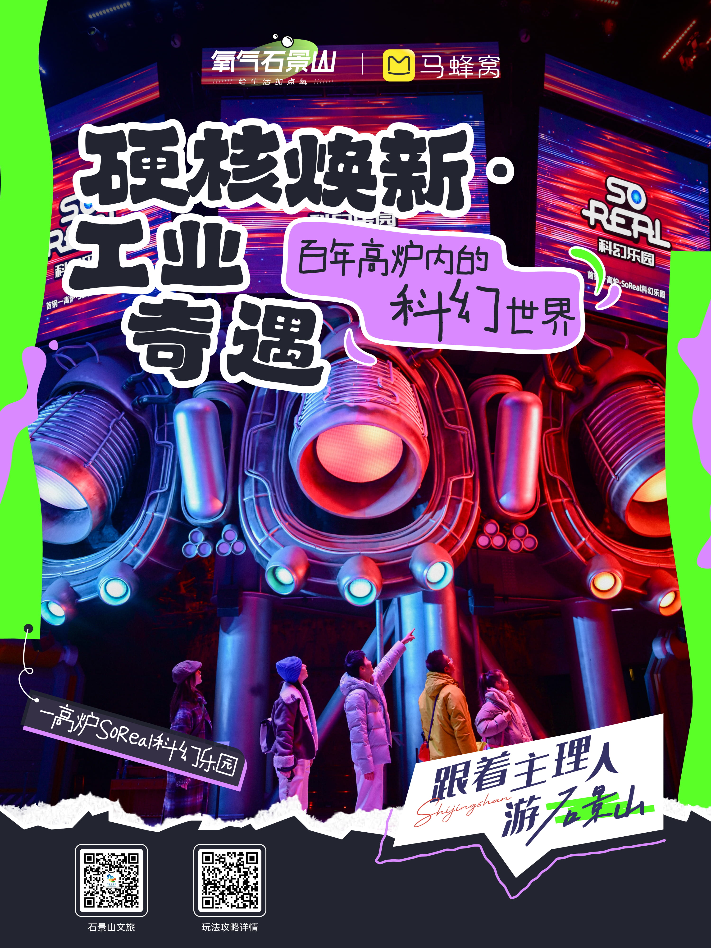 SoReal科幻乐园所在的首钢一高炉,享有“功勋高炉”之誉。这座曾兼具百炼高温、百米高度、百年历史的工业巨构,如今成为工业与科技想象交织的赛博朋克世界。乐园内有奇境穿越、太空模拟、全息互动等数十项沉浸式体验项目,游客仿佛步入科幻电影场景,可切身感受前沿科技的新奇魅力。