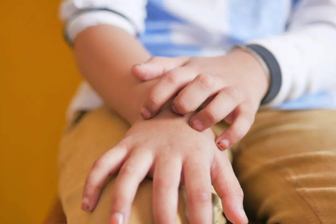 皮肤护理要保持清洁干燥,用温和药膏缓解湿疹,别让孩子抓挠。