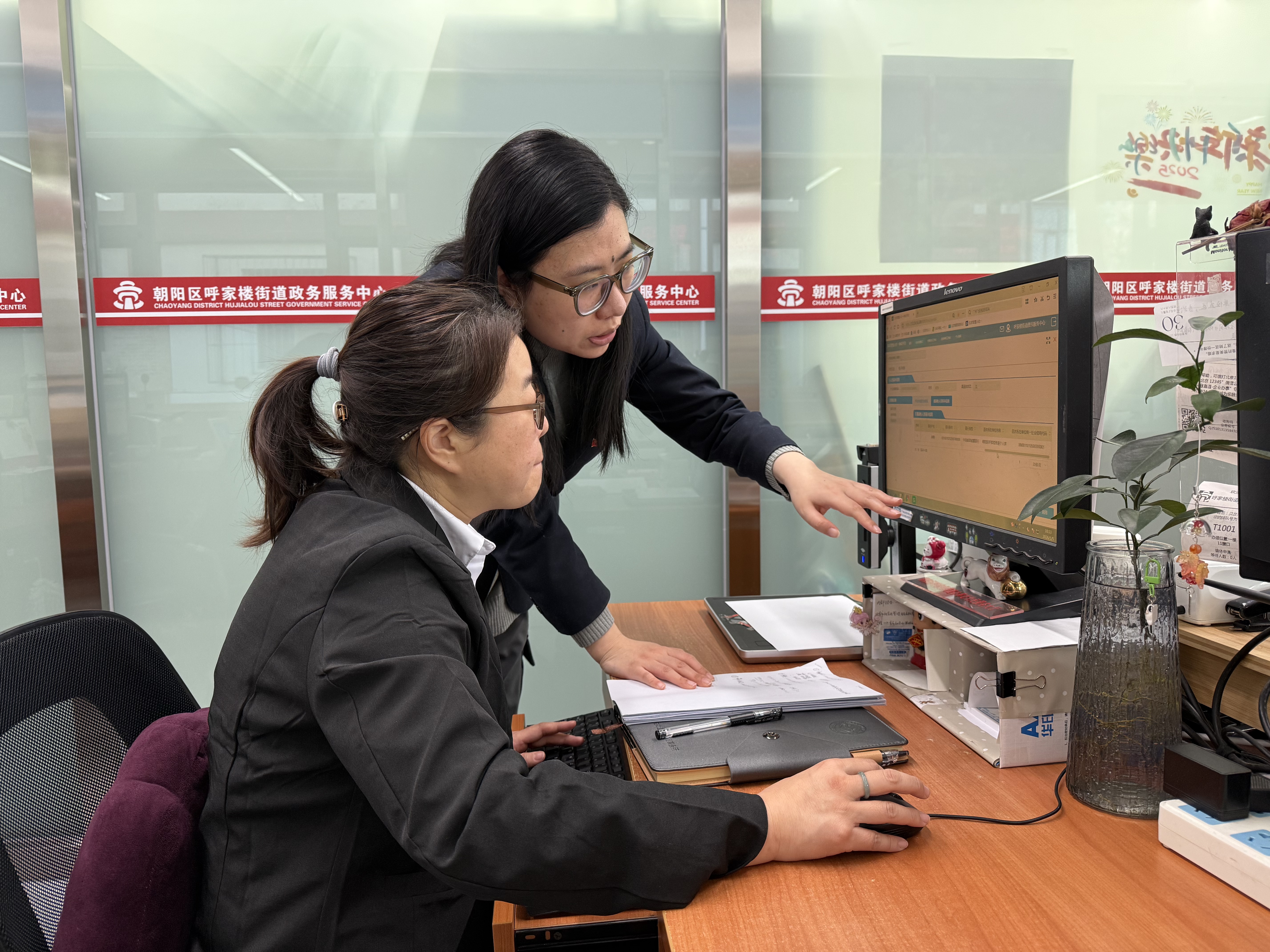 1月4日早上8点40分,46岁的刘丽从家中出发,5分钟车程后,抵达呼家楼街道政务服务中心。换上整洁工装、戴好工作牌,她精神饱满地走上窗口服务岗位,这是她失业一年多后重归职场的第一天。