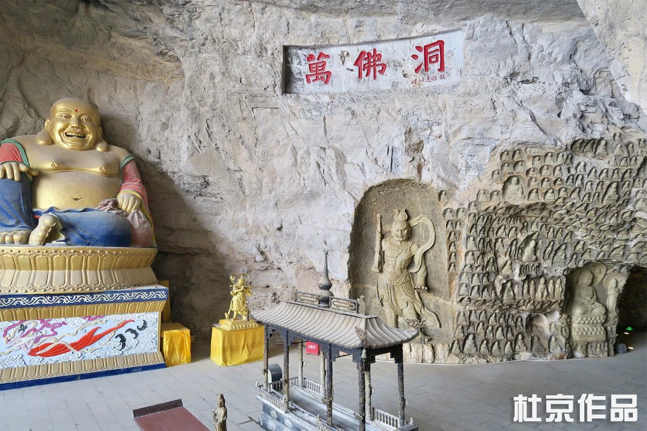 冬日,树木在萧萧寒风中脱尽叶子,嶙峋壁立的山崖,淡淡的有些发白,不像夏天雨后那么深蓝,也不像春秋佳日那么明朗。沿着蜿蜒的山径漫步山中,我来到被称为天门洞、东天门的万佛洞,得知因其外部形状如民间的灶台,又俗称为“锅㝩㝗子”。
