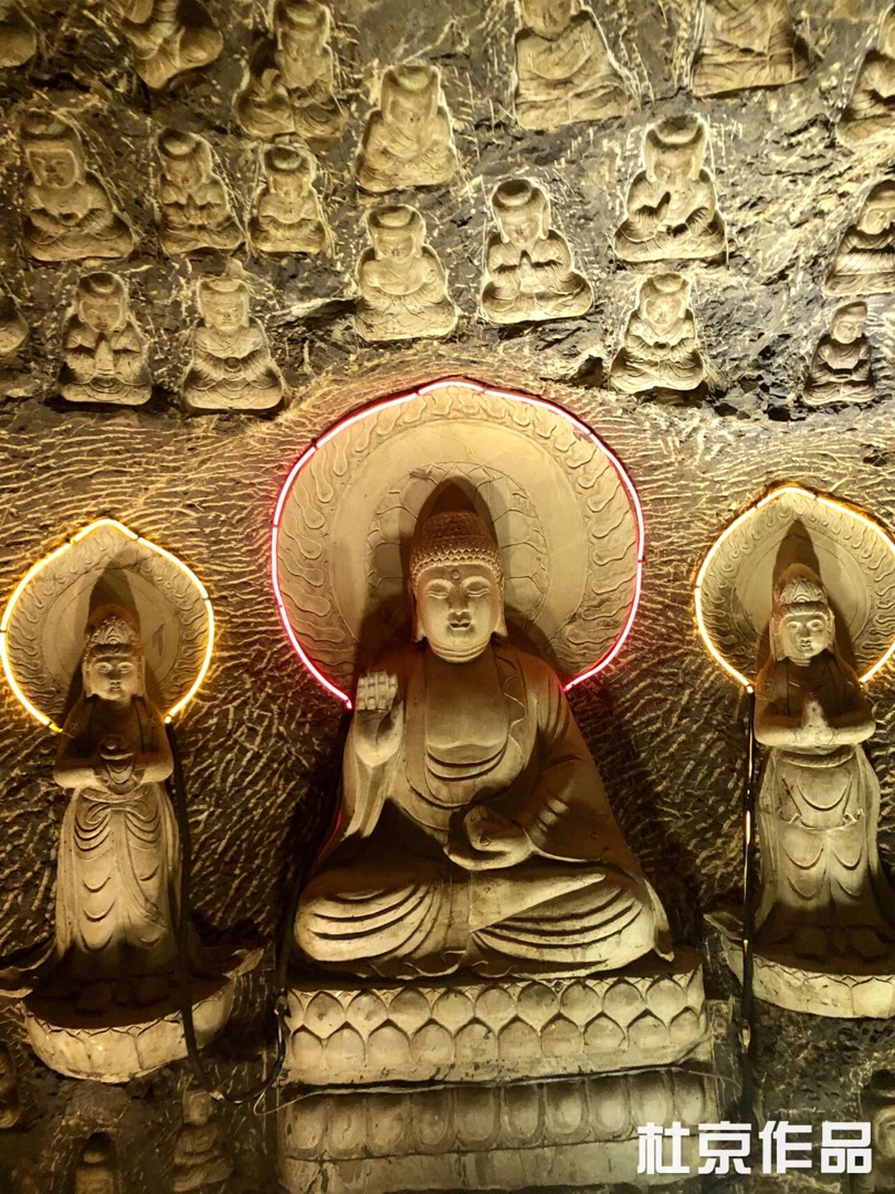 罗汉堂的建筑巧夺天工,充分利用抱犊寨山顶上得天独厚的土层,修建成规模宏大的地下佛教殿堂,其中的500罗汉全部采用鹿泉的青石精雕而成,件件堪称精品,尊尊栩栩如生。此时此刻,令人感慨万千,对抱犊寨的文化历史深怀敬畏。