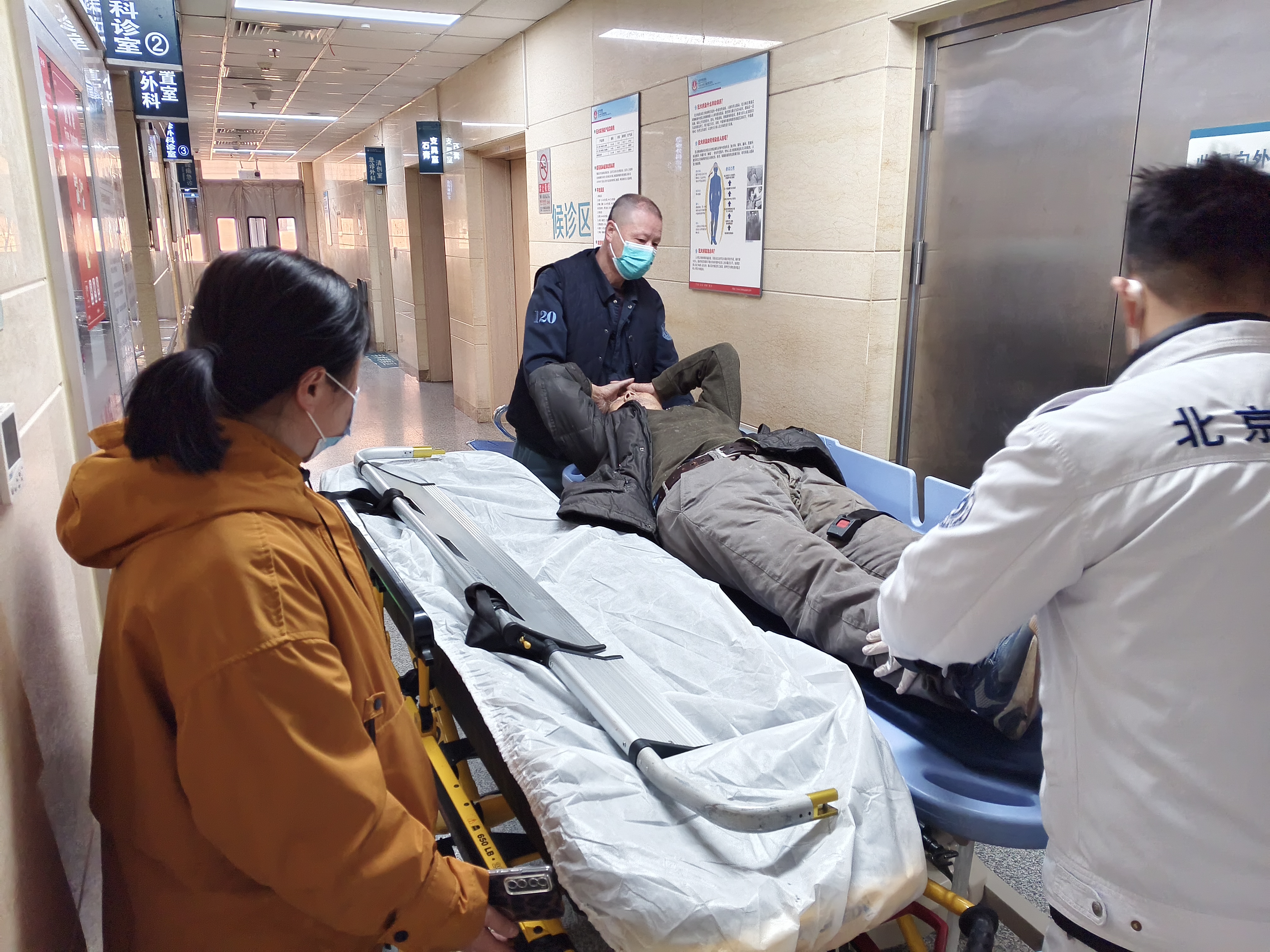 只用了5分钟,值班社工于秋颖就赶到了现场。她俯身询问:“您能听见我说话吗?哪里不舒服?”老人没有回应于秋颖,但意识尚存。怕贸然移动老人造成二次伤害,众人没有挪动老人。