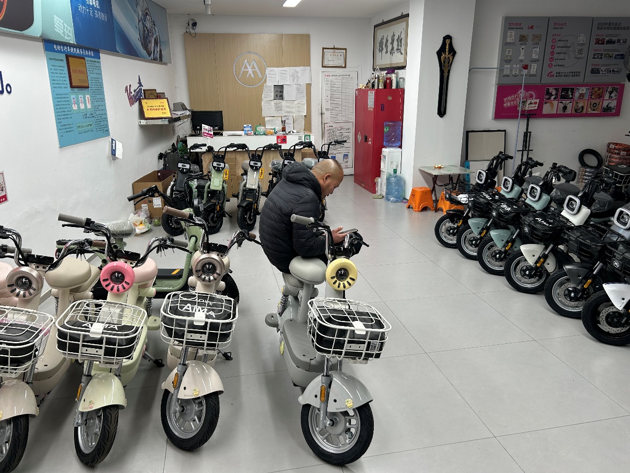“看新车吗?最里边那辆已经有人订了,其他几款都卖。”走进旁边的台铃电动车门店,就有销售小哥热情地上前招呼。一个月前,这里一辆新车也没有,只有个别顾客会推着旧车前来维修。而如今,店里已经有4款新车在售。