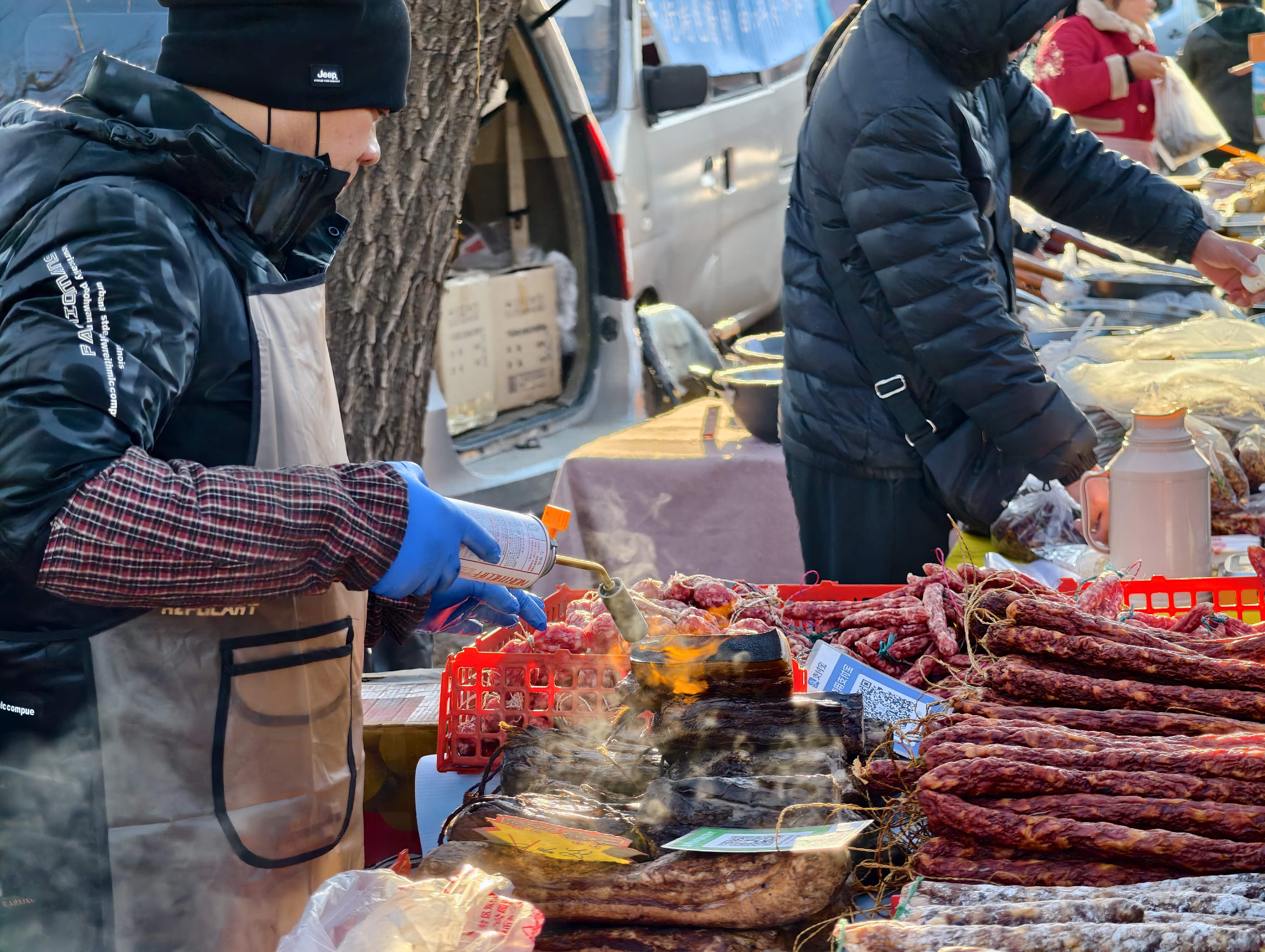 春节临近,市集更添喜庆。手写春联摊位前排起队,墨香混着食物的香气在空中交织。带孩子来的父母,手里拎着年货,眼里看着红彤彤的装饰,耳边是摊主的祝福声。