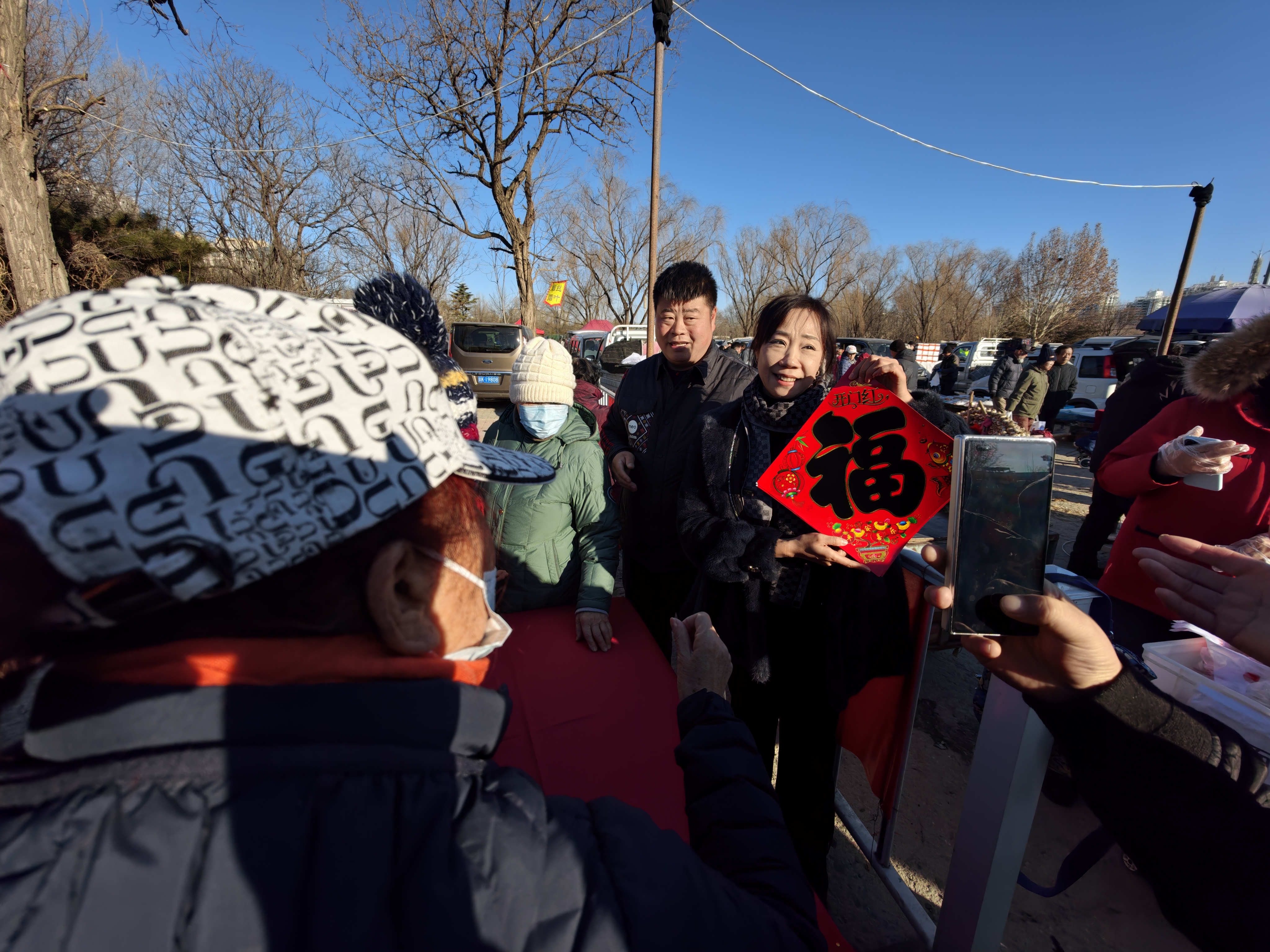 “这才有过年赶集的感觉嘛!”带着孙子来的刘大爷说,他手里拿着一张福字,“市集开了之后,我们老邻居常约着一起来,买完菜还能在公园溜达一圈。”