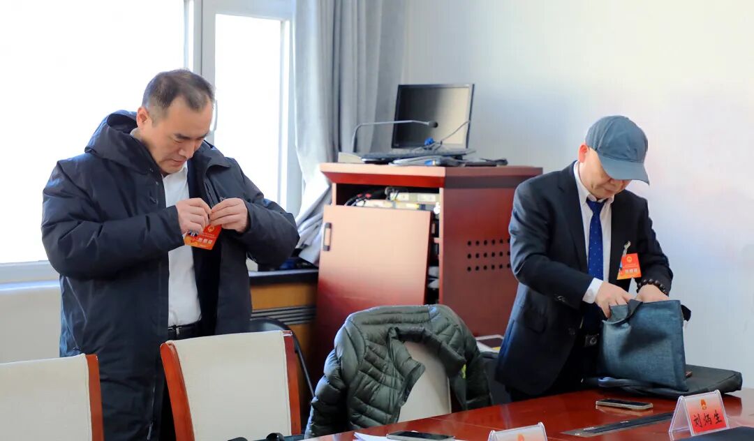 报到现场,工作人员将提前准备好的证件和会议材料整齐码放,方便代表及时领取。区人大代表们翻阅会议议程,互相交流前期调研情况。作为人民群众的“代言人”,代表们做足了功课,个个有备而来。