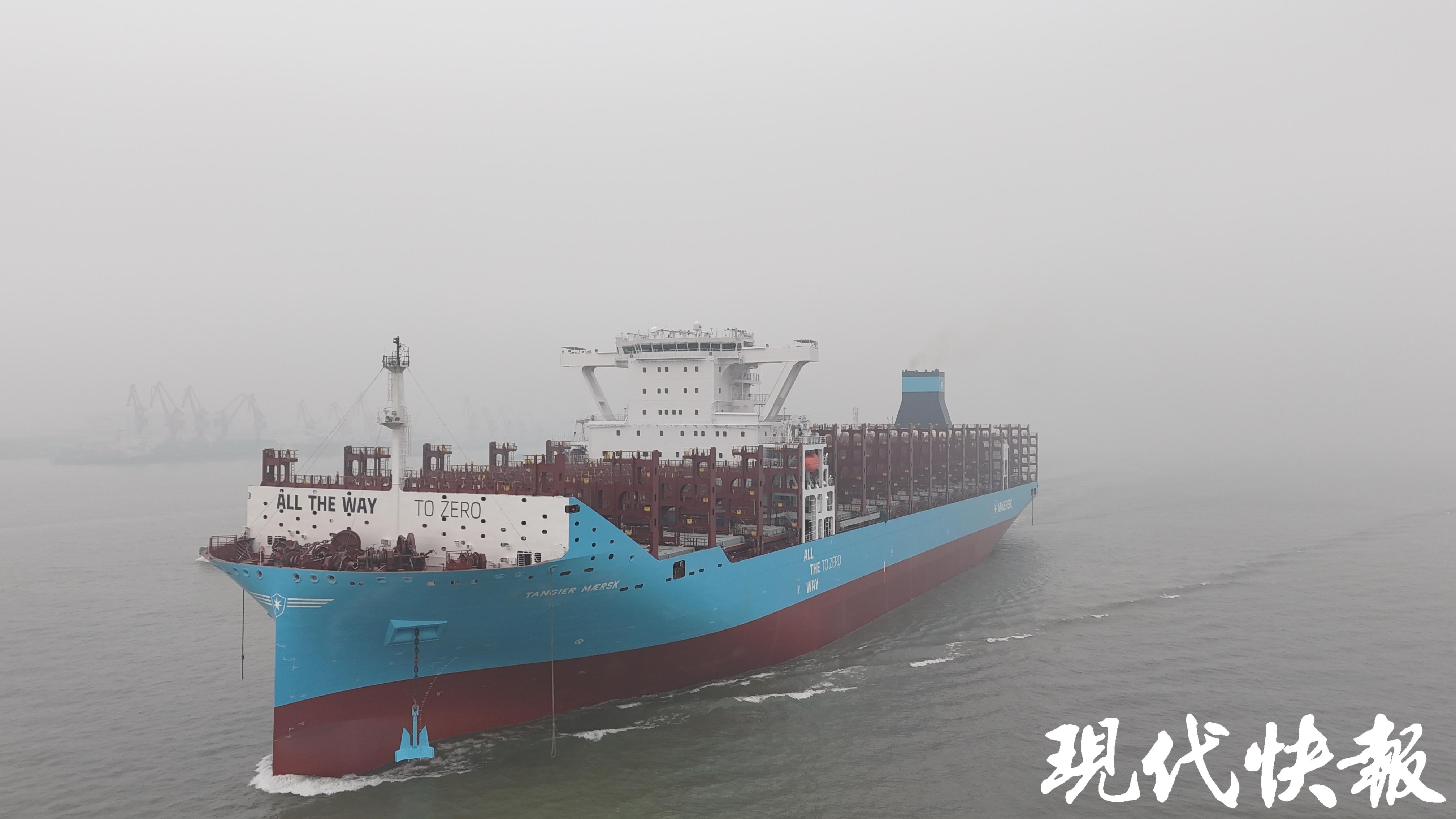 1月6日,在海事部门的倾力维护下,长江干线今年首艘超大型新造集装箱船“新扬子536”轮由泰州靖江安全离港,前往东海指定水域试航,为2026年泰州造船产业迎来“开门红”。