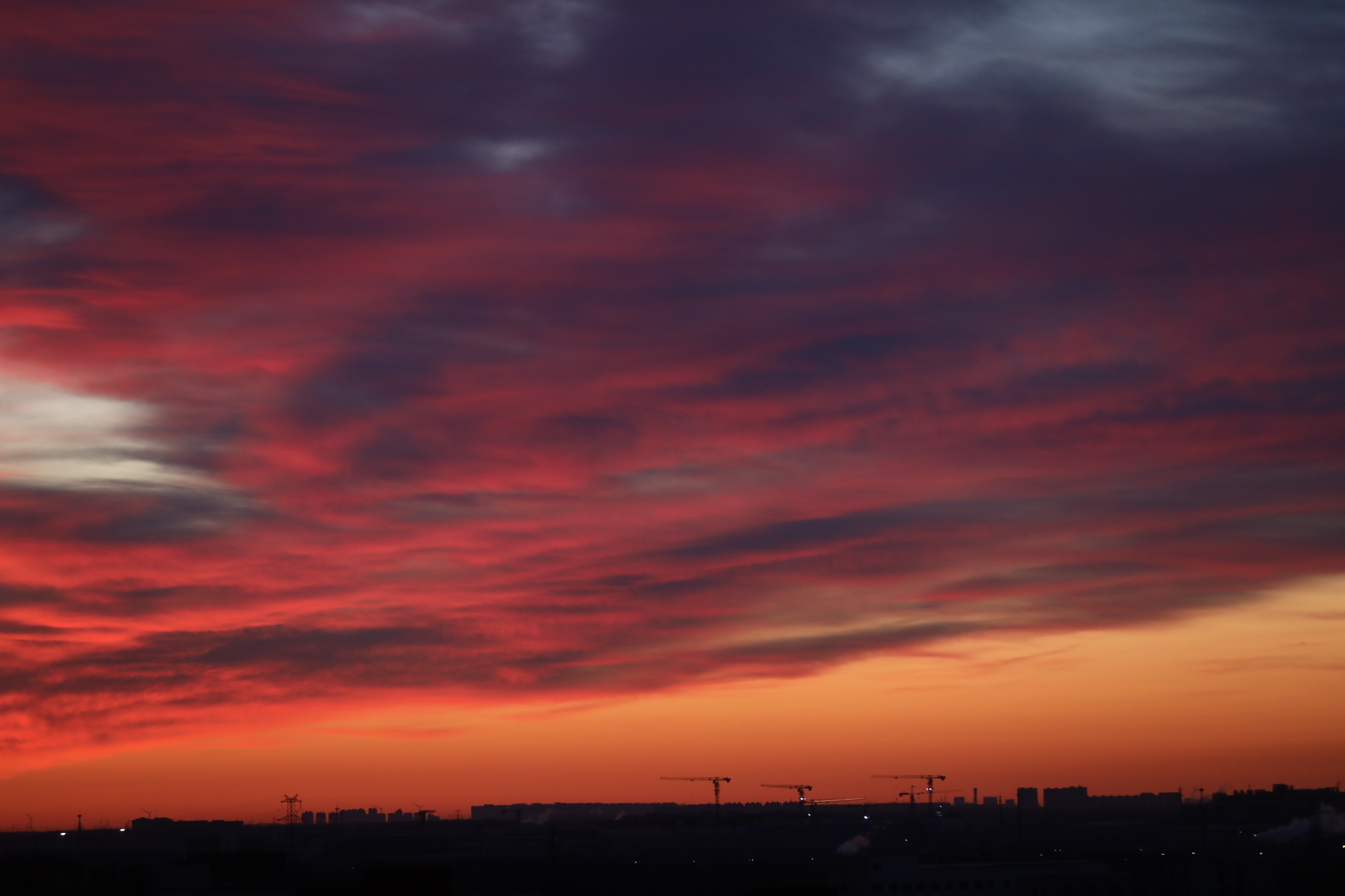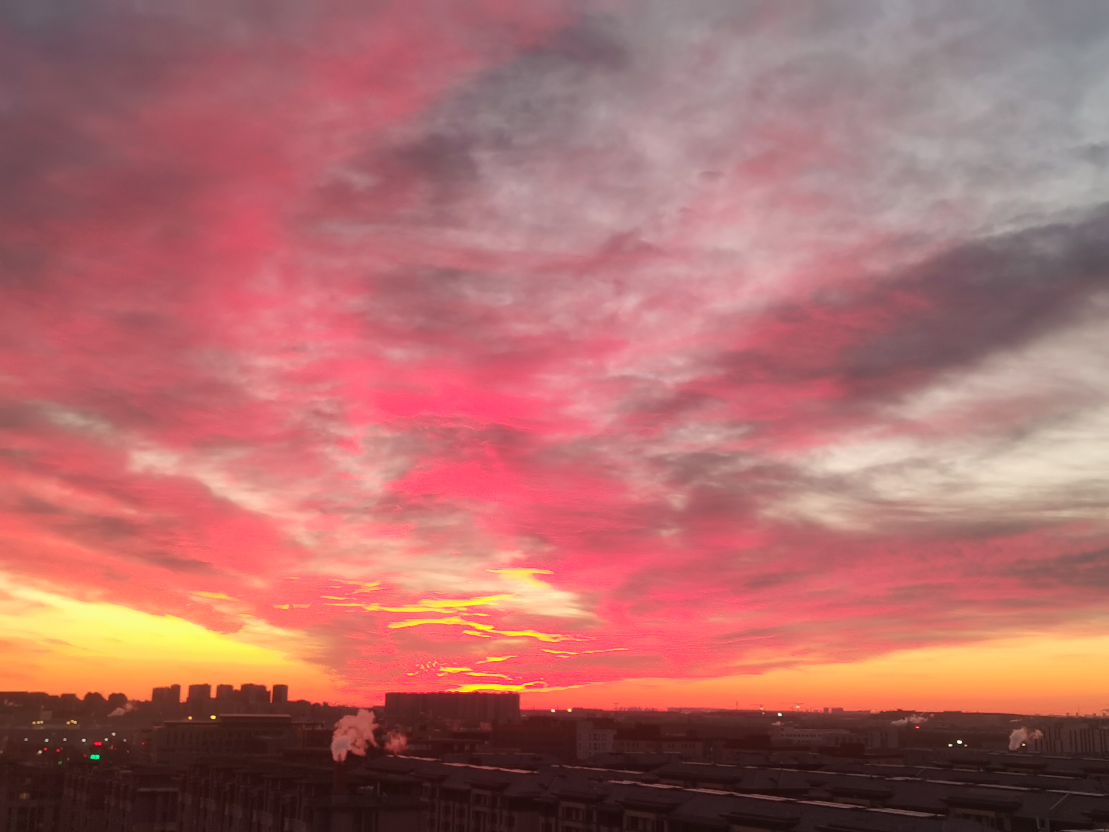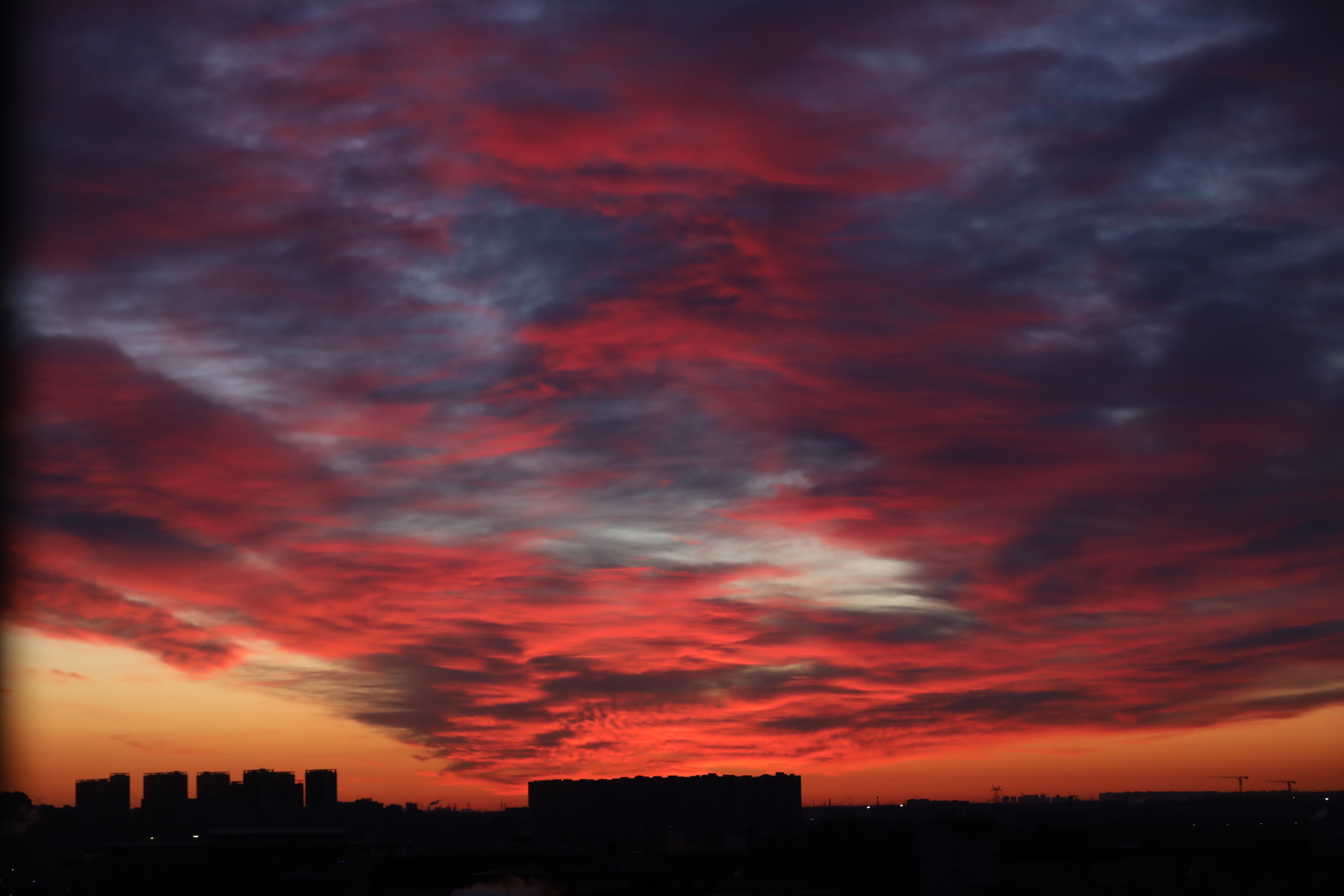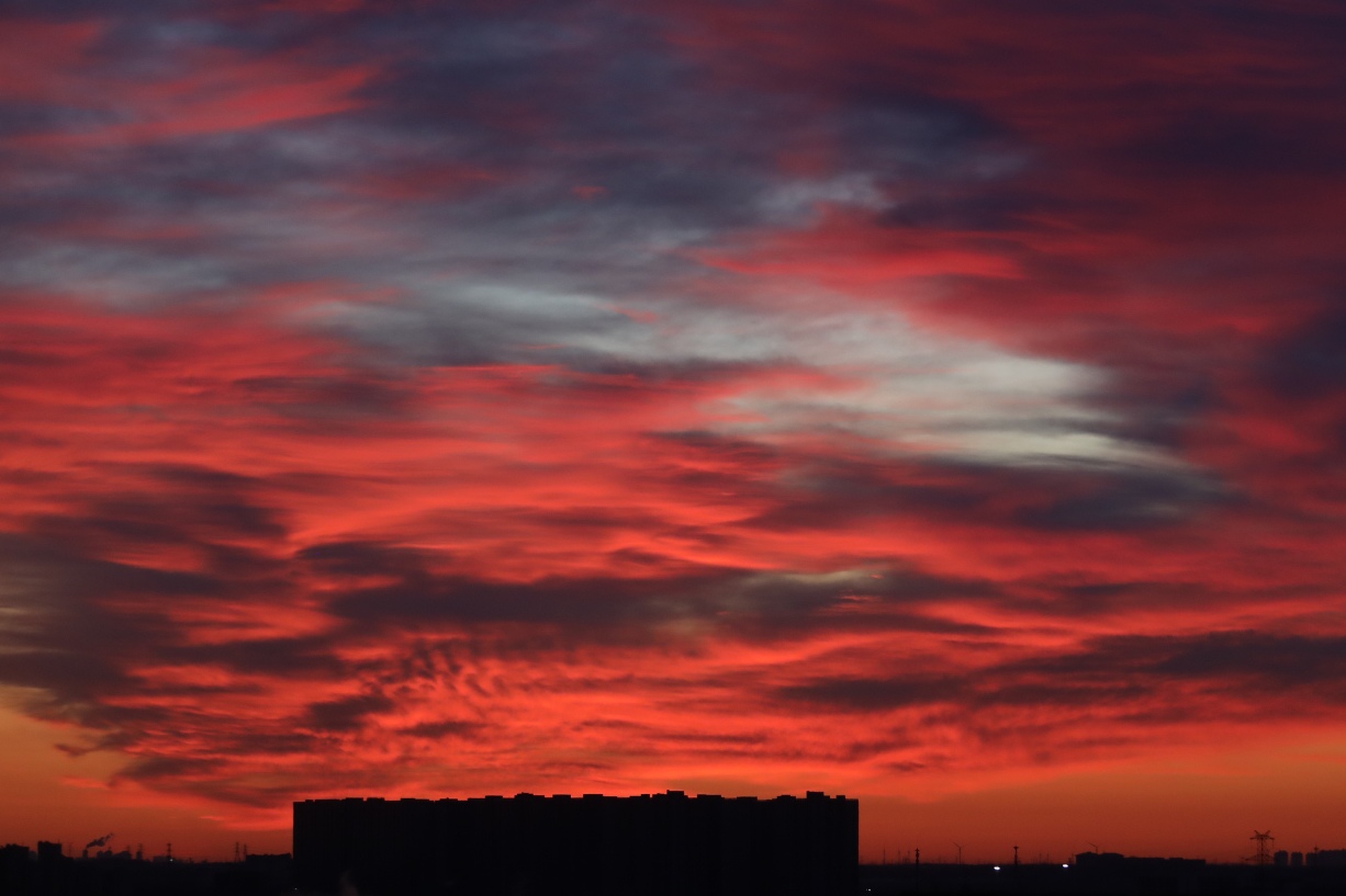 北京的天际被红霞点燃。
