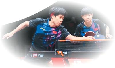 中国乒乓球运动员王楚钦(左)/孙颖莎在比赛中。