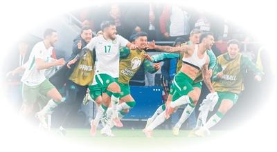 爱尔兰男足国家队球员庆祝比赛胜利。
