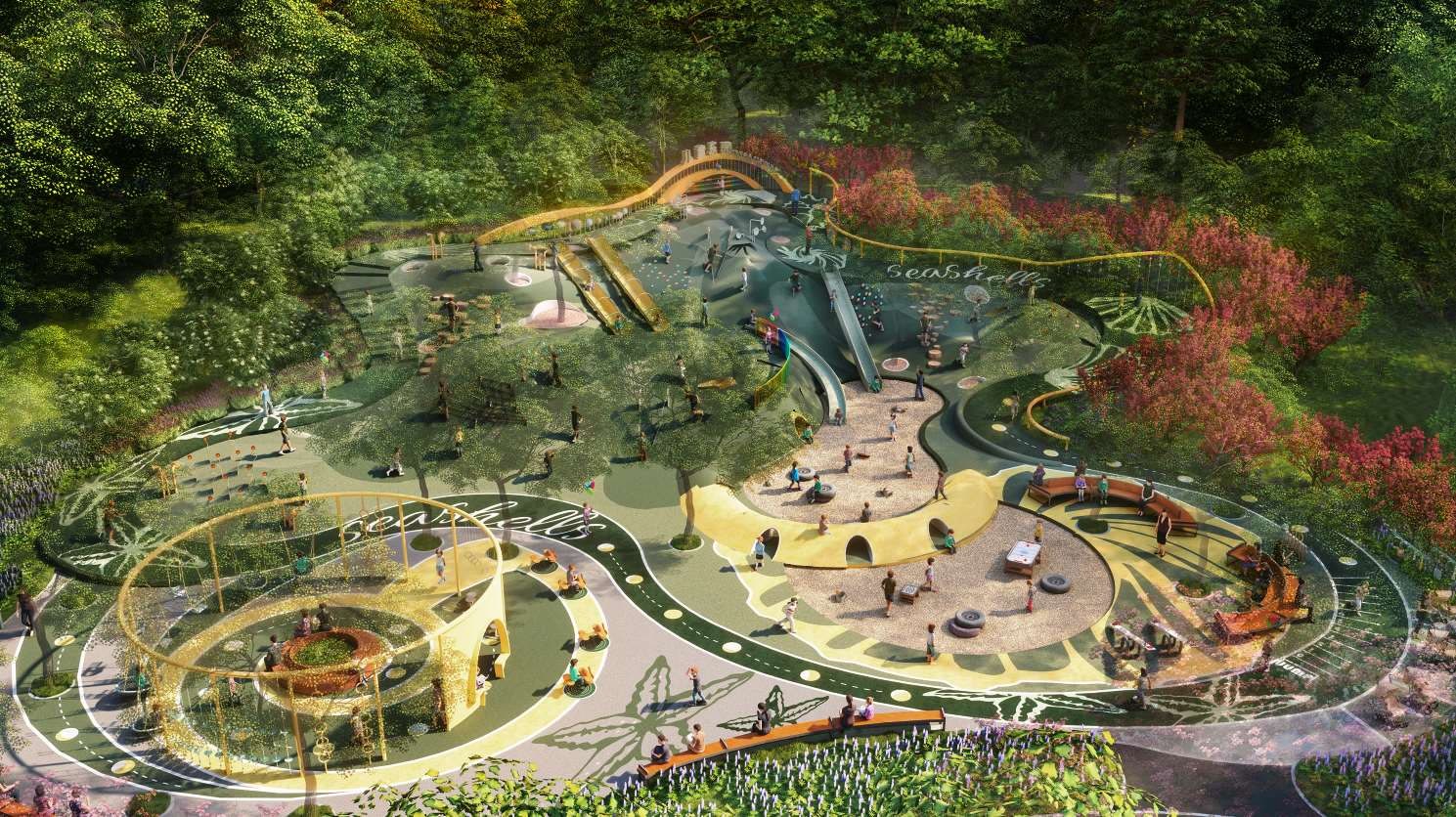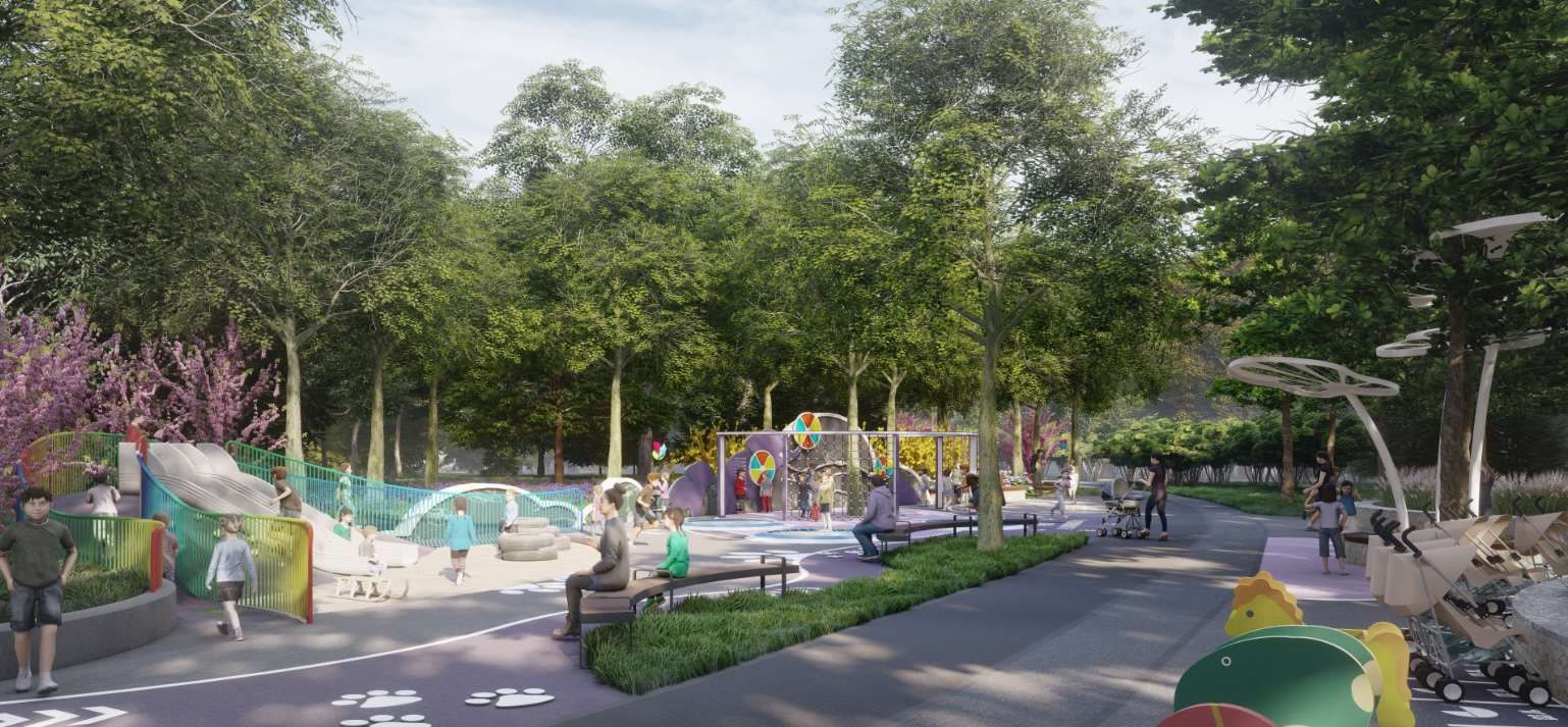 此次改造,最大的亮点是优化空间布局,整合资源,让不同的人群都能找到适合自己的空间。公园外围建设一级环形路网,形成慢跑与慢行分离的格局,西侧布局综合活动区、儿童活动区,其中南部的儿童活动区,新设置双层游憩设施,最大限度地利用空间。