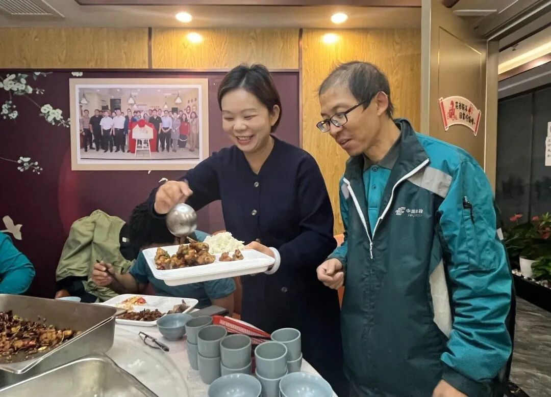 △金春梅为外卖小哥提供暖心服务。