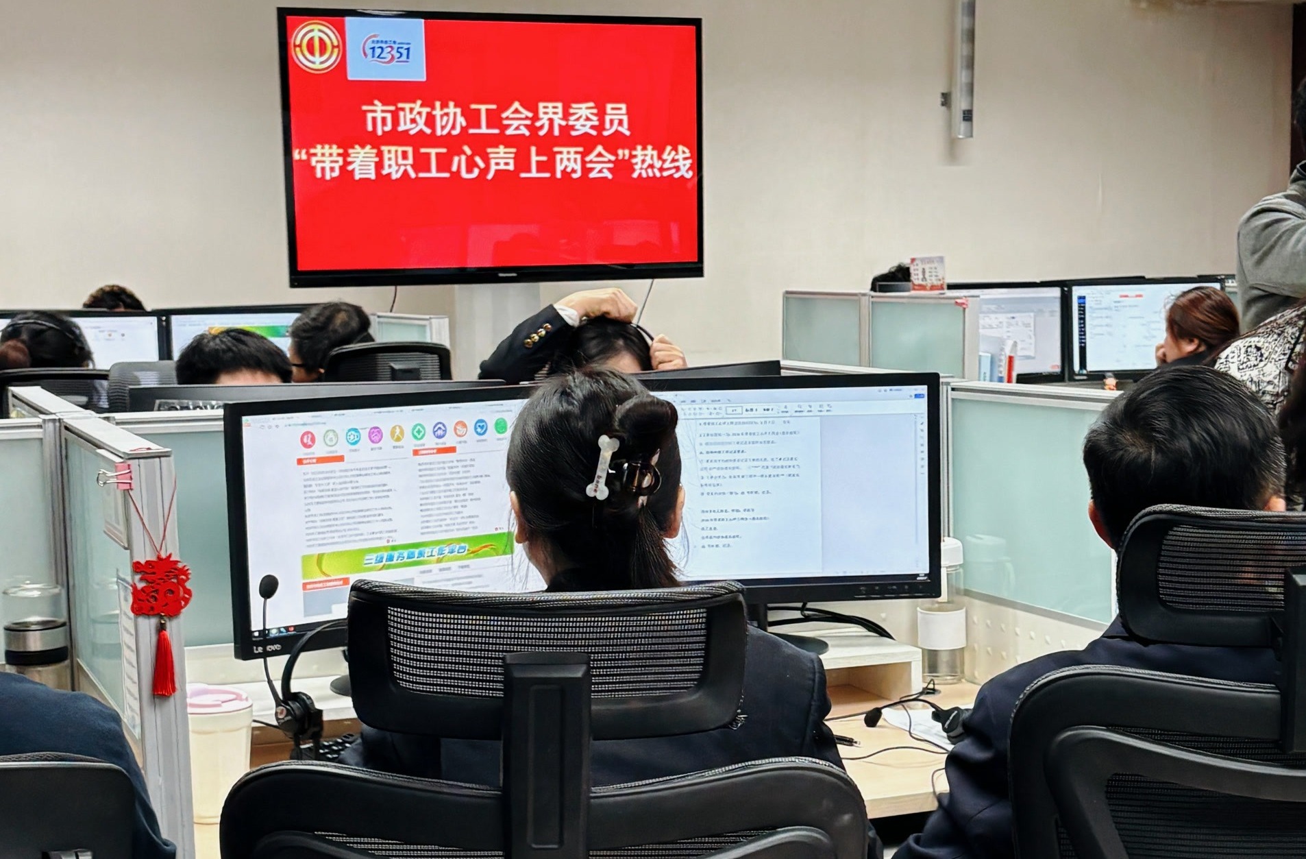 “您好,我是市政协委员,请讲……”1月7日上午9时30分,“带着职工心声上两会”热线迎来第20个年头。十余位委员齐聚北京市总工会12351职工热线座席,接热线,听心声。