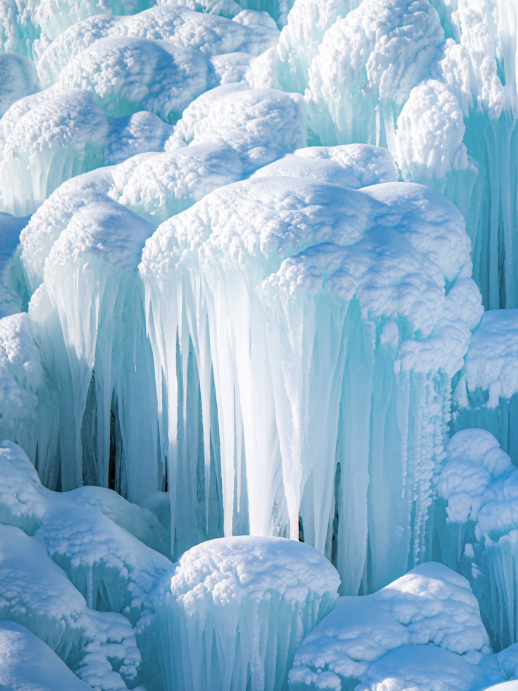 晶莹剔透的冰瀑挂满峡谷岩壁