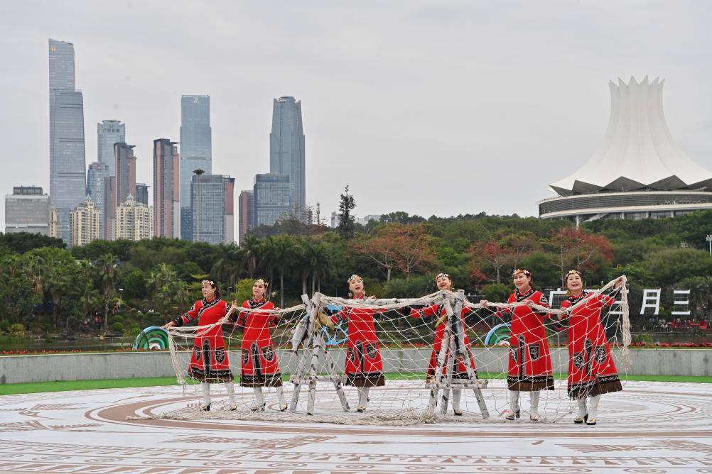 2025年3月31日,黑龙江村歌队队员在“广西三月三·八桂嘉年华”开幕式暨“四季村歌”活动启动仪式现场演唱《乌苏里船歌》。新华社记者 周华 摄