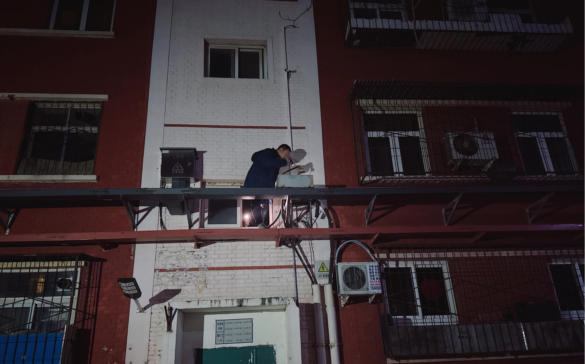 工作人员到达现场后,一边安抚居民情绪,一边组织专业力量排查故障。这栋建于20世纪80年代的老楼,内部线路错综复杂,排查如同“抽丝剥茧”。抢修人员采取分段合闸方式逐段检测,最终锁定故障根源——因冬日居民用电需求激增,导致主电缆超载熔断。确定故障原因后,工作人员决定先临时搭建电缆恢复供电。