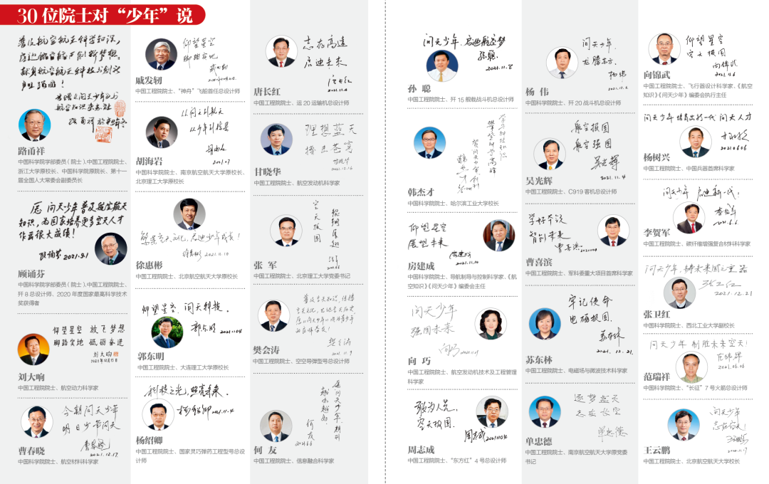 ▲30位院士为《问天少年》亲笔题词