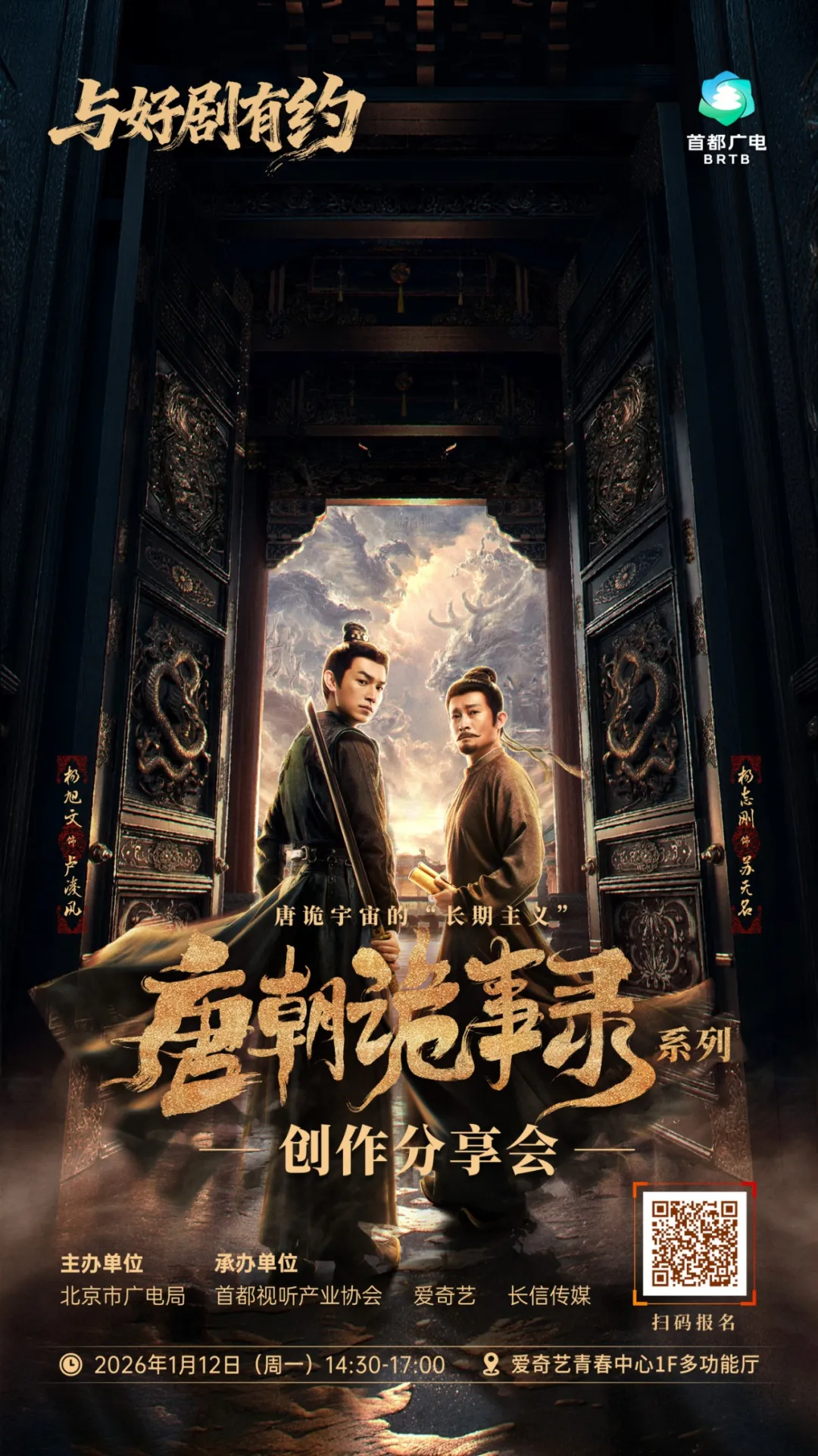 由北京市广电局主办,首都视听产业协会、爱奇艺、长信传媒共同承办的《唐朝诡事录》系列创作分享会将于1月12日在爱奇艺开讲!名额有限,速来报名!