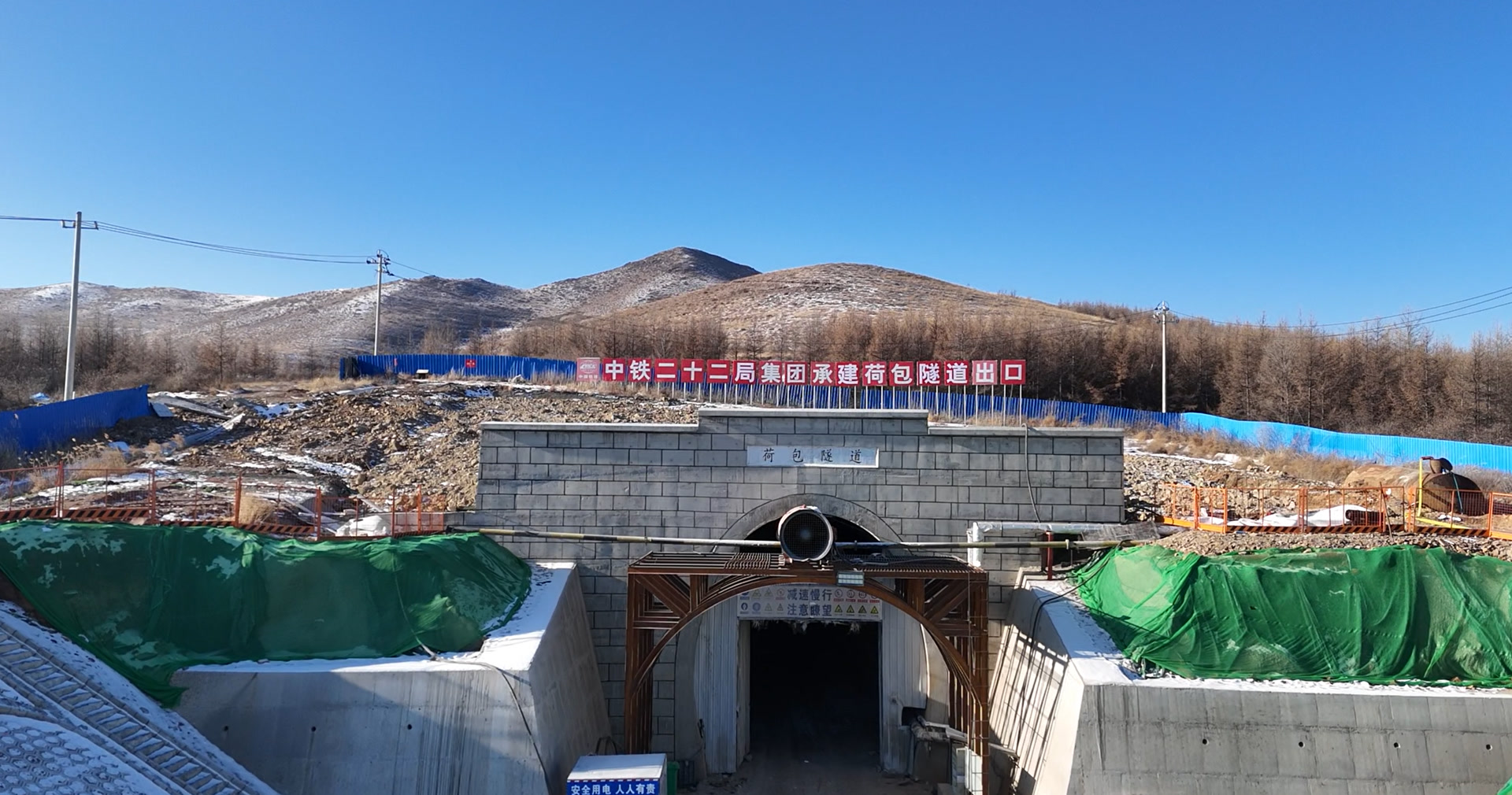 该隧道由京张城际铁路有限公司负责建设、中铁二十二局承建。为确保施工安全有序推进,施工团队制定了“双向掘进、同步推进、24小时轮班作业”的施工方案,从进口、出口两个方向推进施工作业,有效提升了施工效率。同时,为应对低温严寒天气,施工团队在作业面通道设置双重防风保温门帘,设置10台热风炮,使隧道内部平均温度保持在20℃左右,既保障了施工人员温暖作业,也筑牢了工程质量防线。