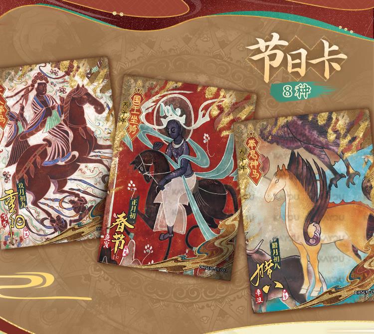 从壁画中的线条韵律到卡牌上的视觉呈现,从月份流转的时间刻度到收藏纪念的情感价值,这套作品巧妙实现了艺术欣赏、与文化收藏的双重赋能,让千年敦煌文化以可触、可感、可藏的形式,走进年轻群体的日常生活。